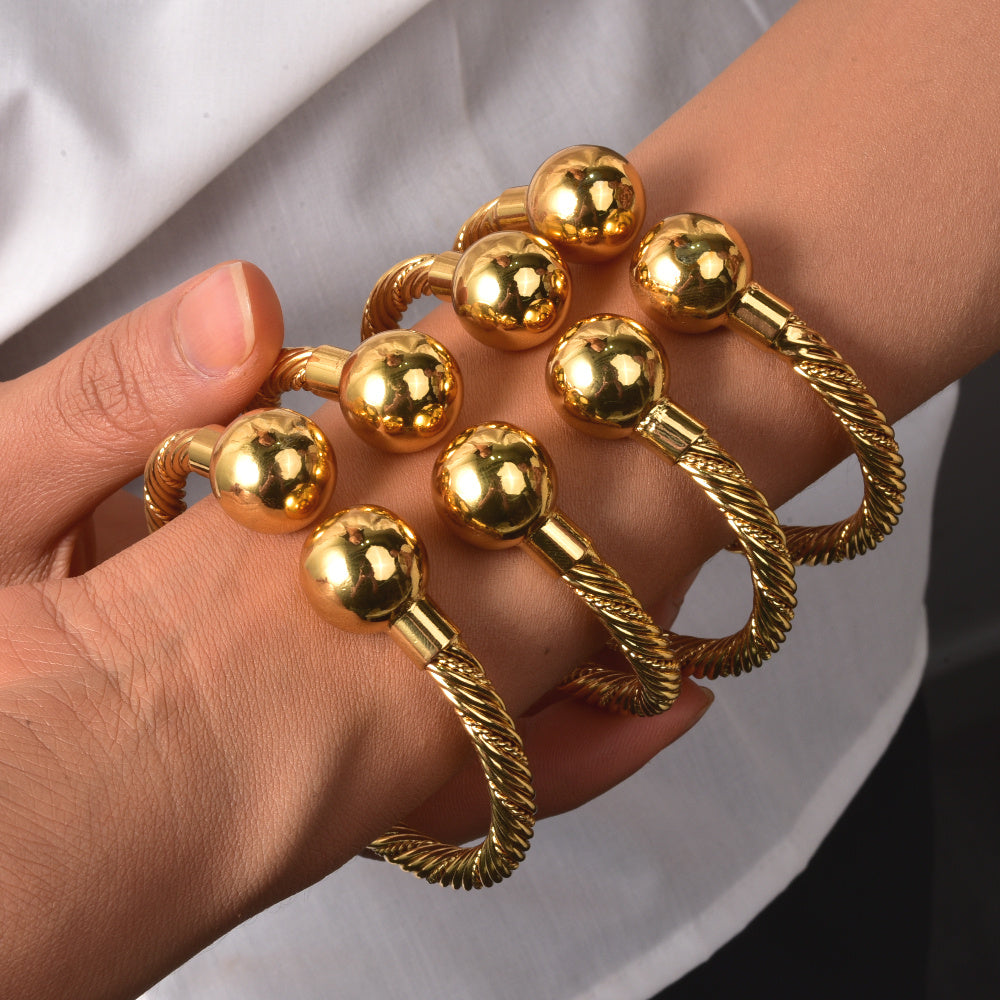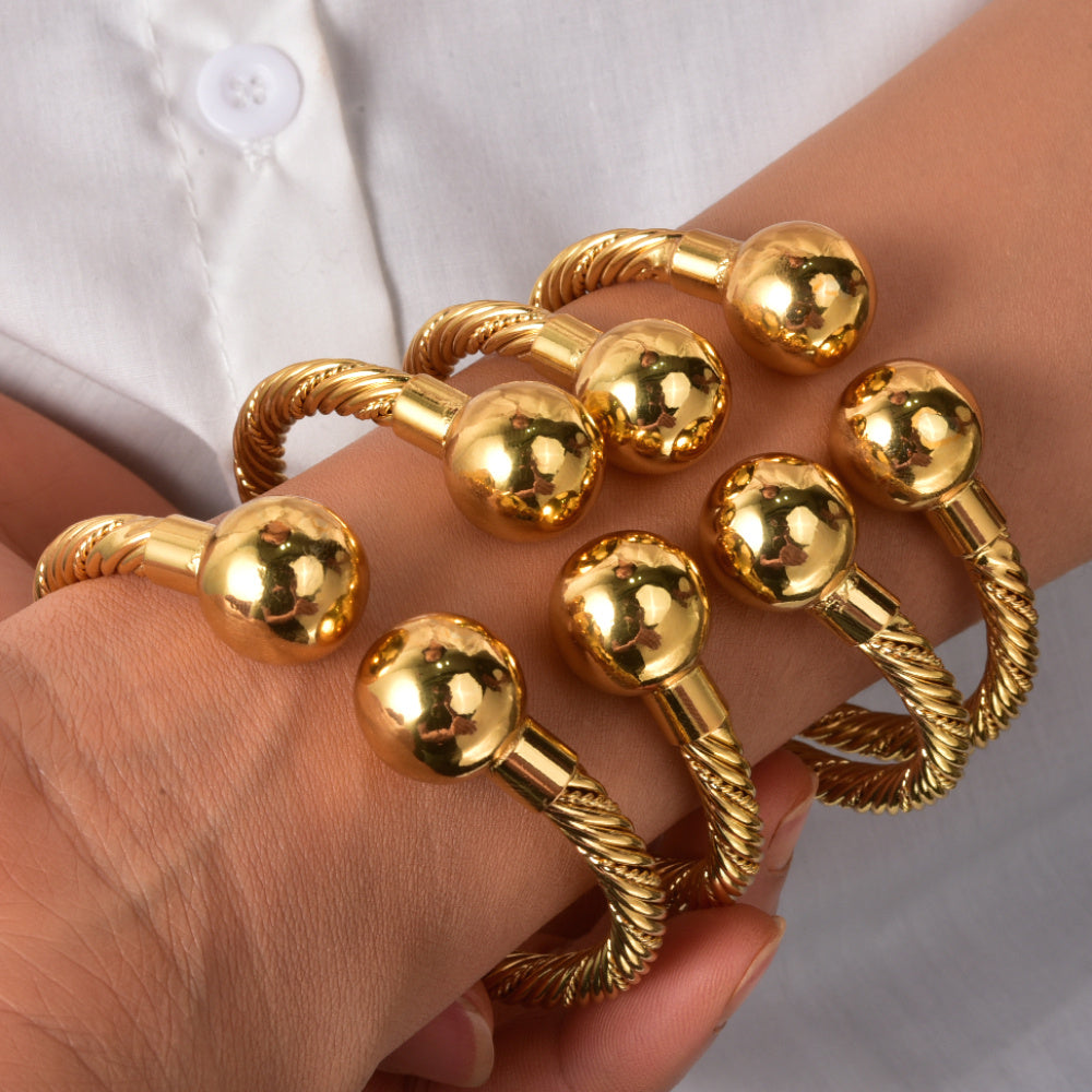 This 4pcs set features a big round ball bead open bracelet set in a classic exaggerated Middle Eastern style. Perfect for weddings, Ramadan, or as a Mother's Day gift.