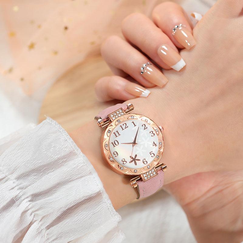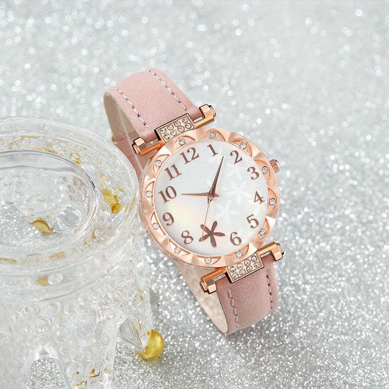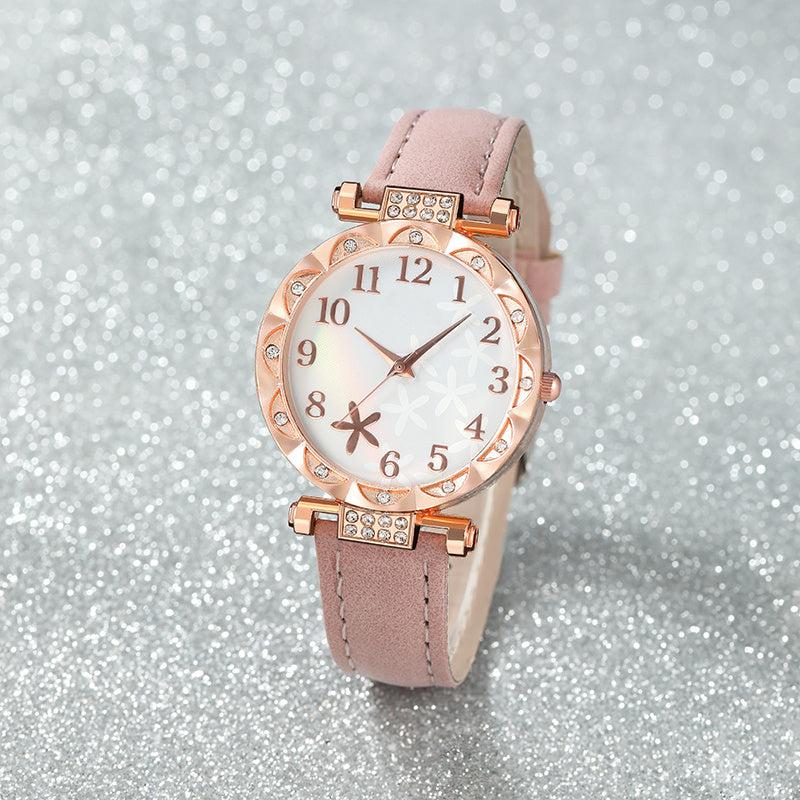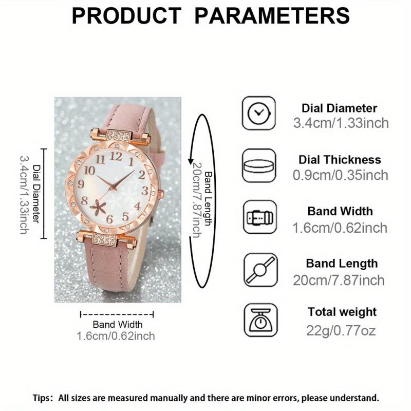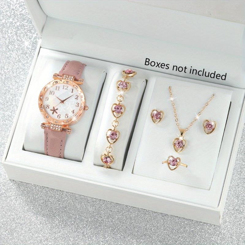 This set includes a stylish women's quartz watch and 5 pieces of elegant jewelry.