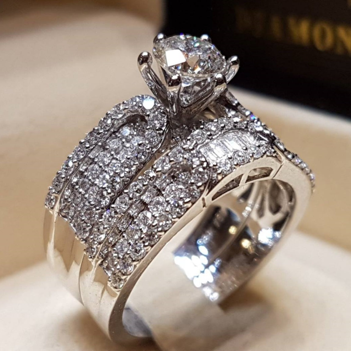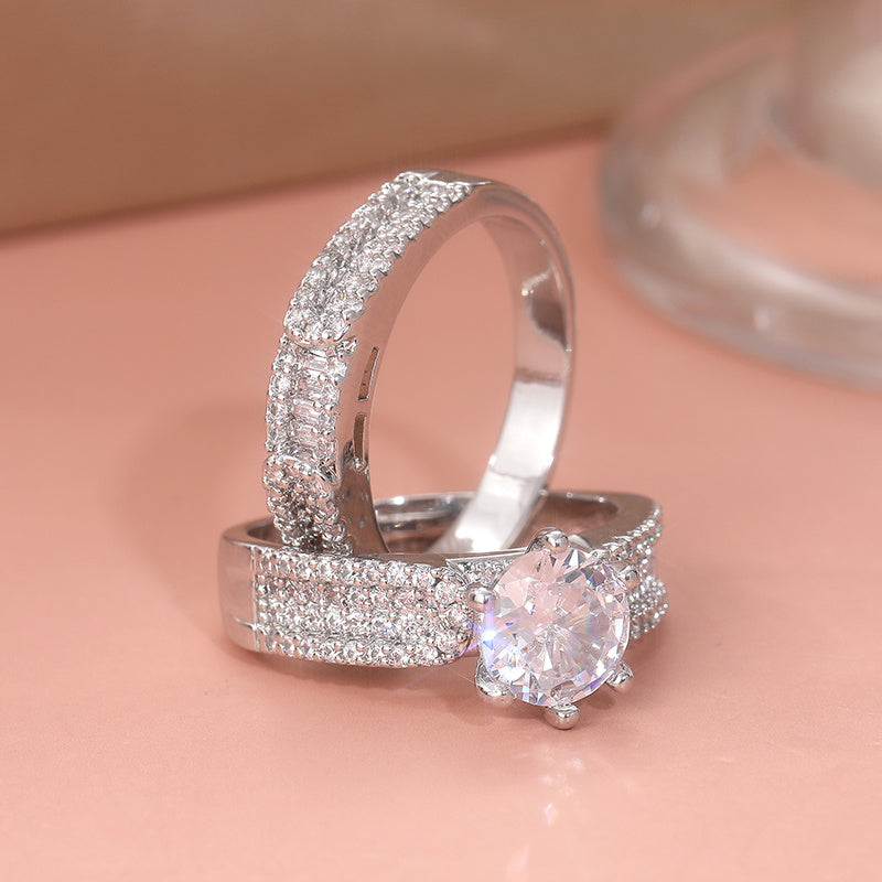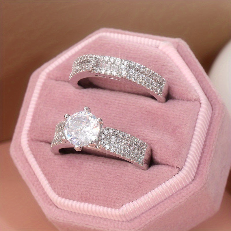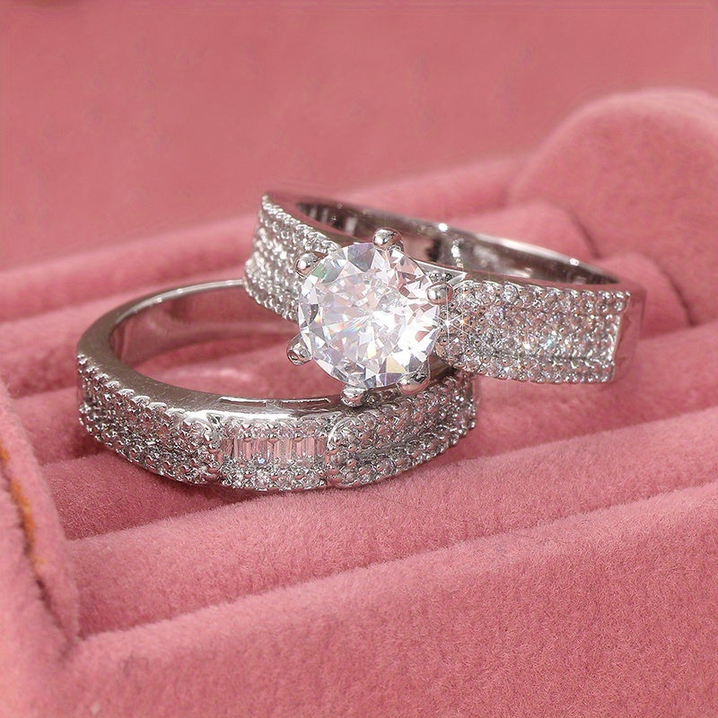 Add a touch of elegance with this 2-piece ring set featuring synthetic zirconia. Perfect for weddings or everyday wear.