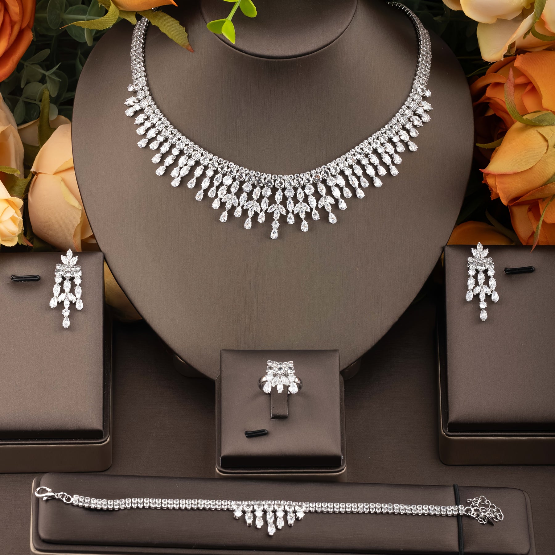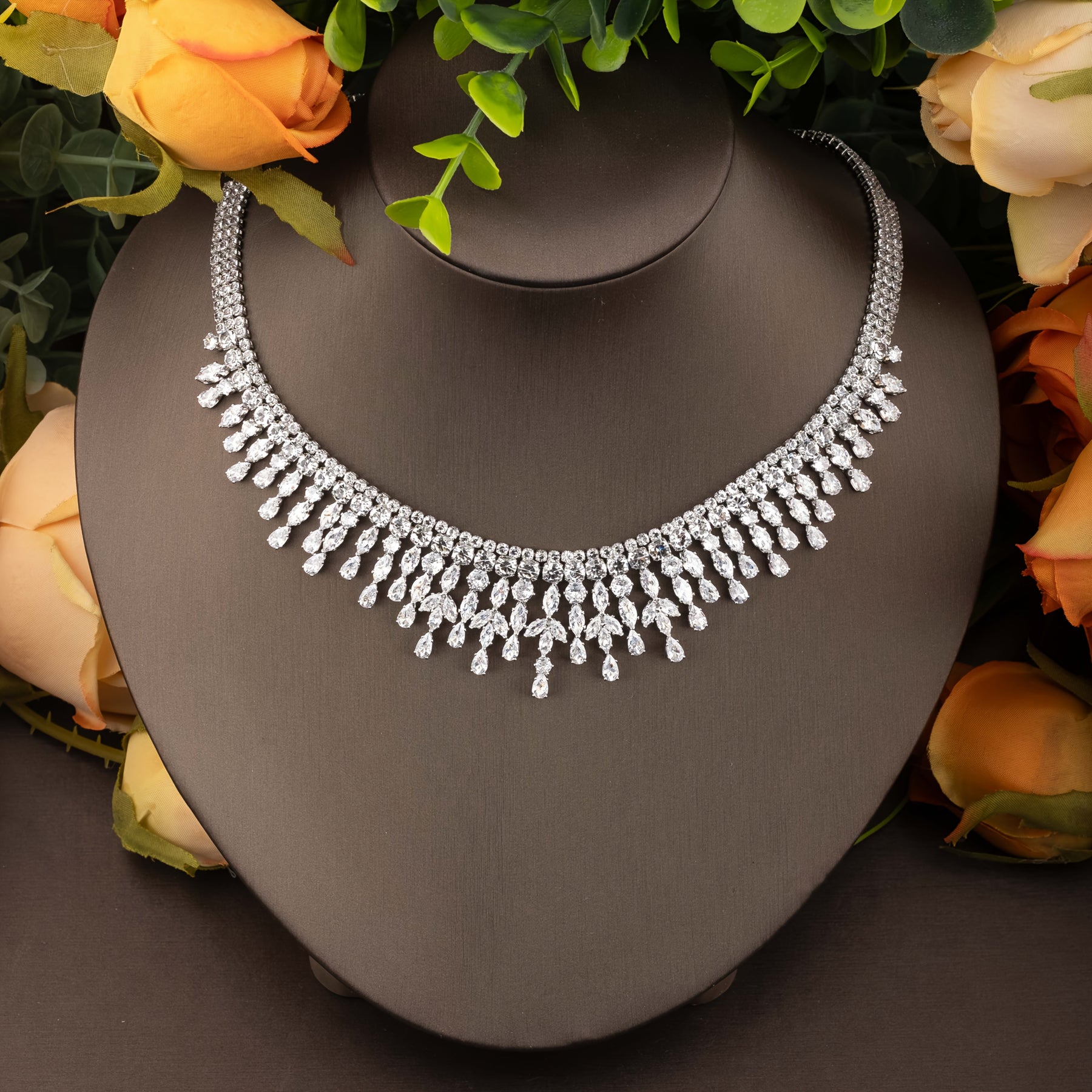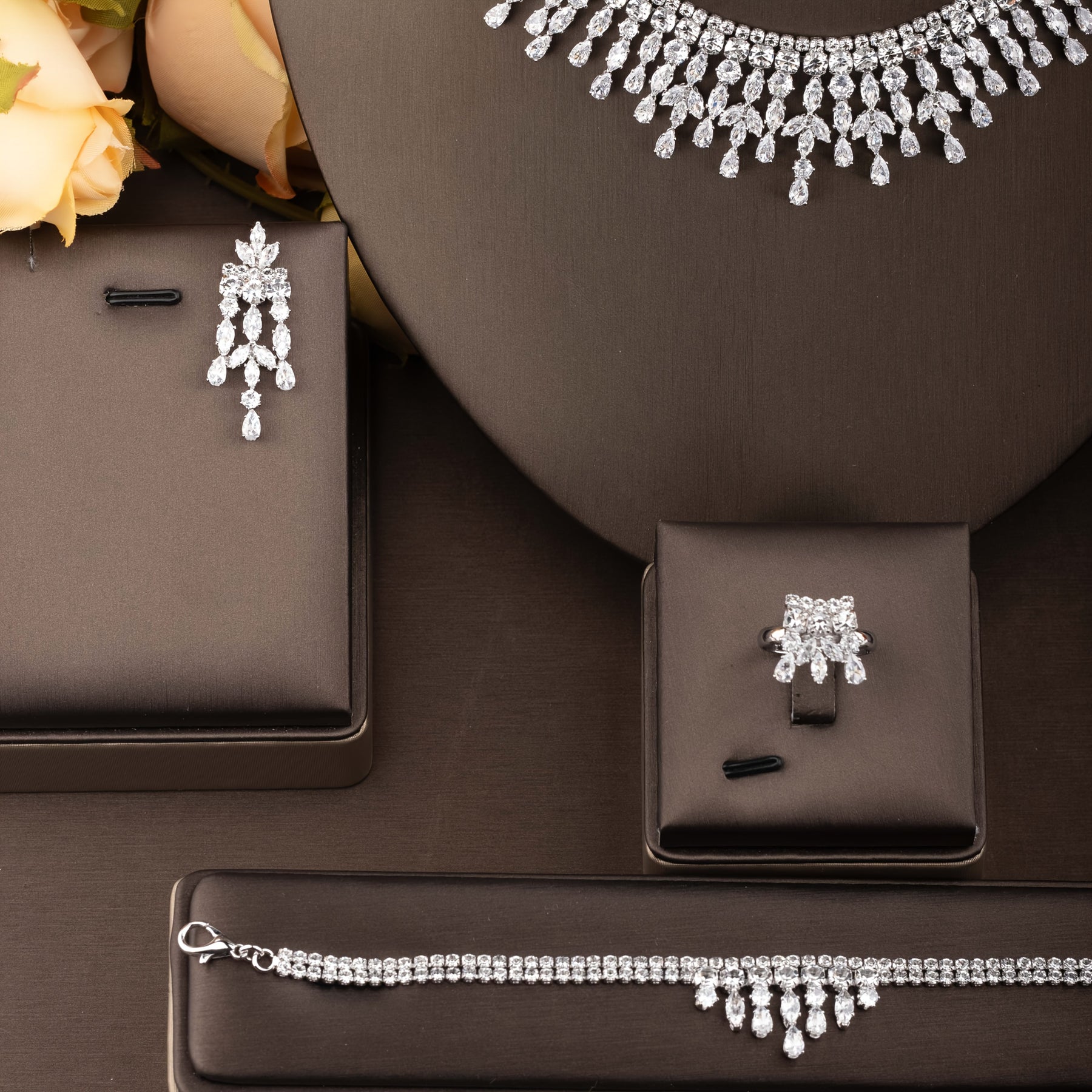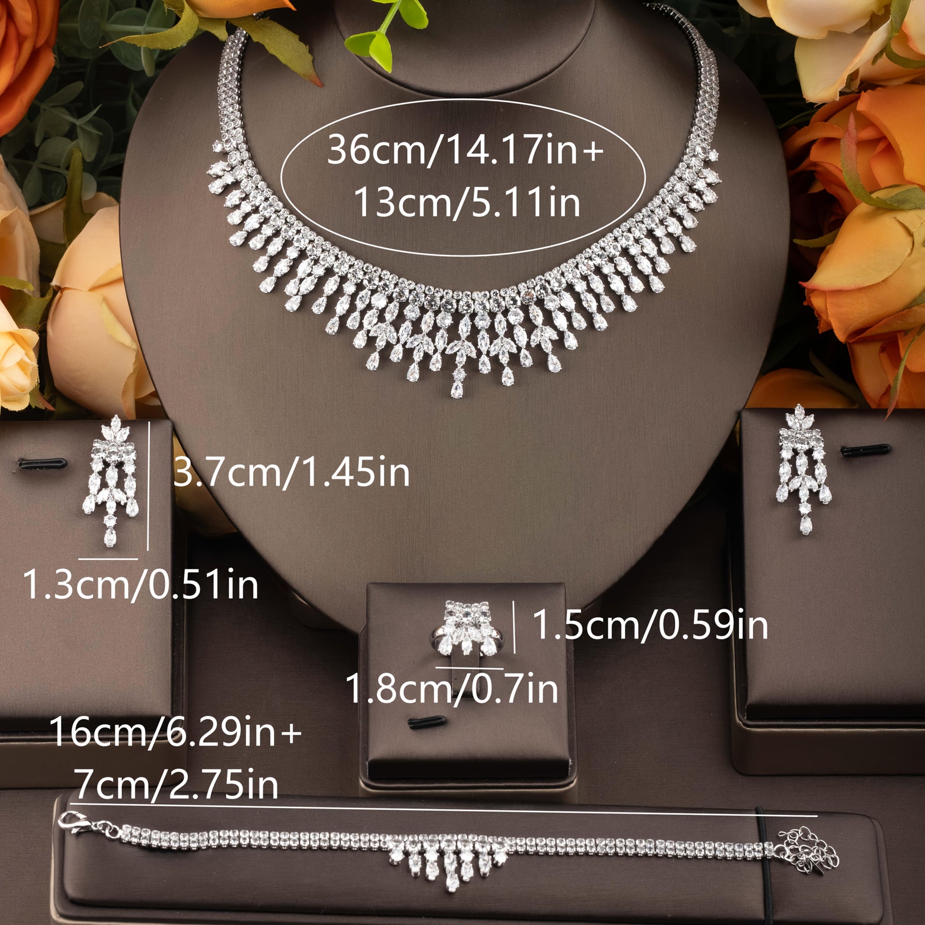 Complete your elegant look with this cubic zirconia necklace, earrings, and bracelet set. Perfect for weddings and upscale events.