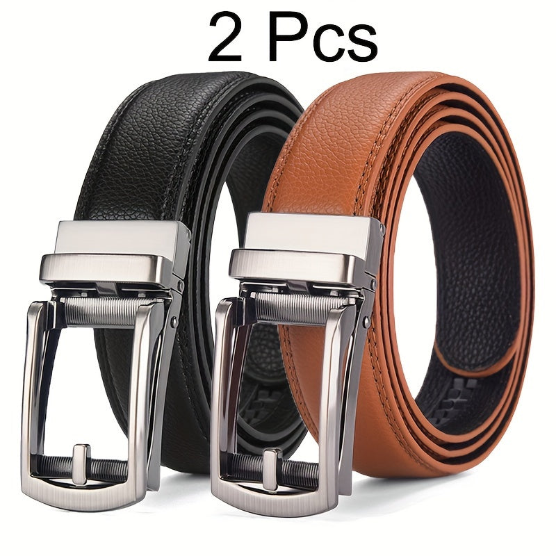Elevate your style with this 2 pack of men's business belts. Made from embossed PU leather and featuring automatic alloy buckles, these belts are perfect for both casual and dress pants.
