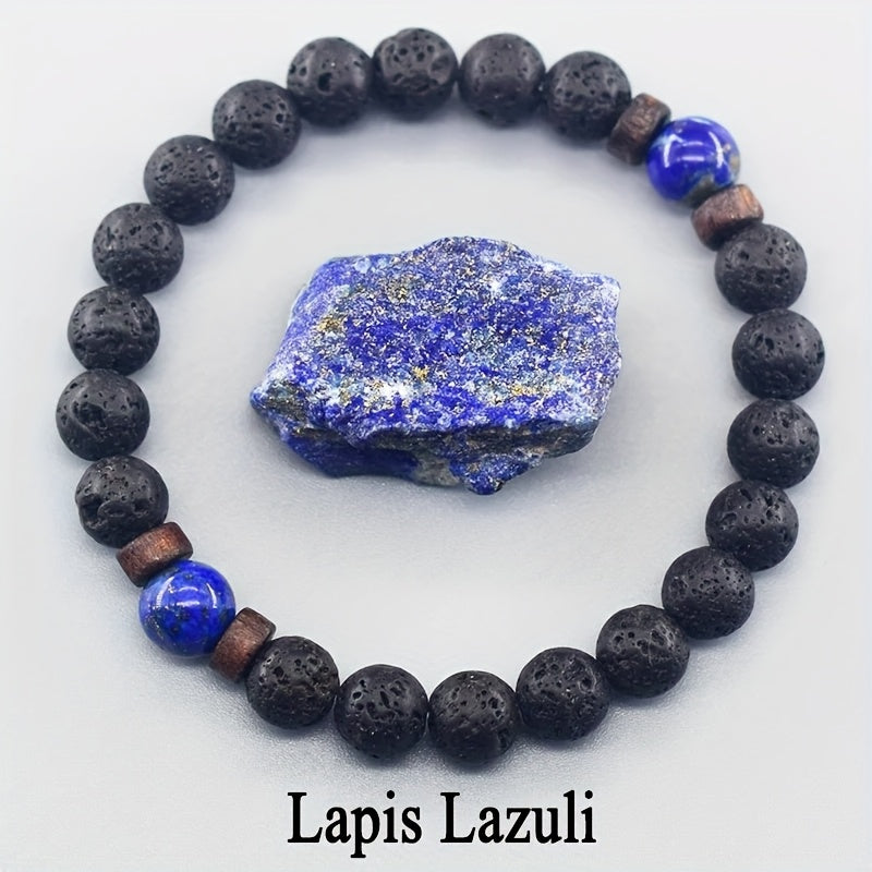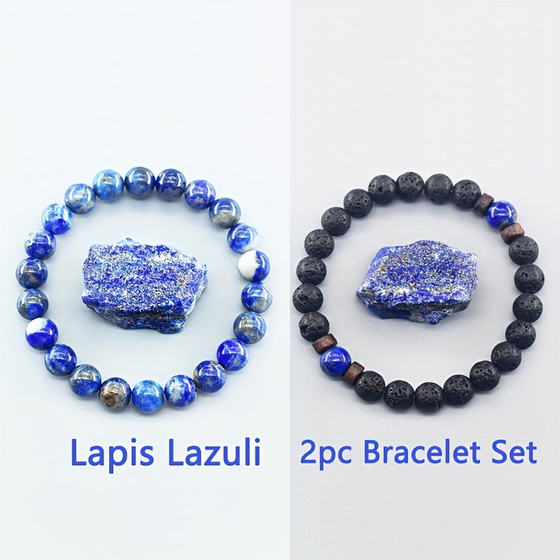 Enhance your style with this set of 2 natural Lapis Lazuli stretch beaded bracelets. Ideal for daily wear or special occasions, this wristband is great as a gift for couples year-round.