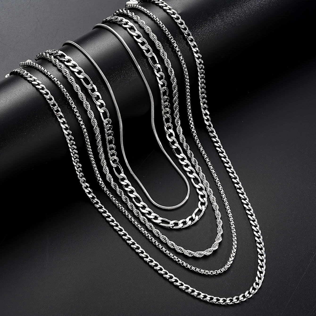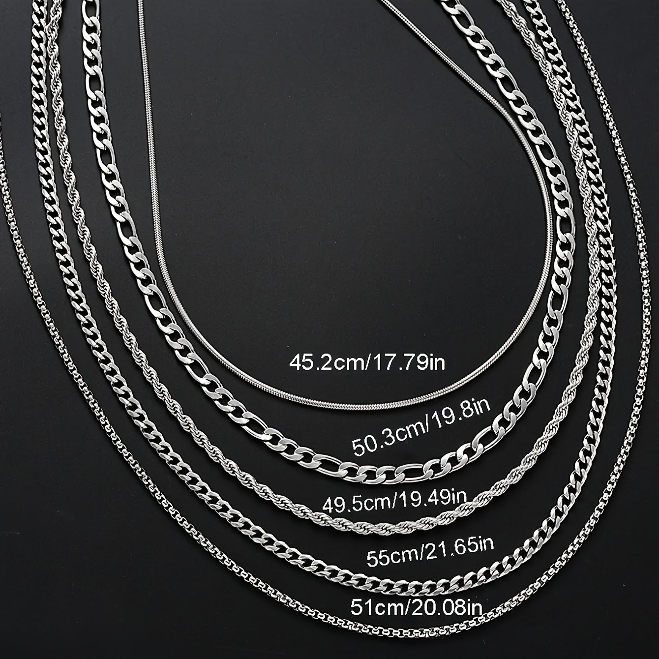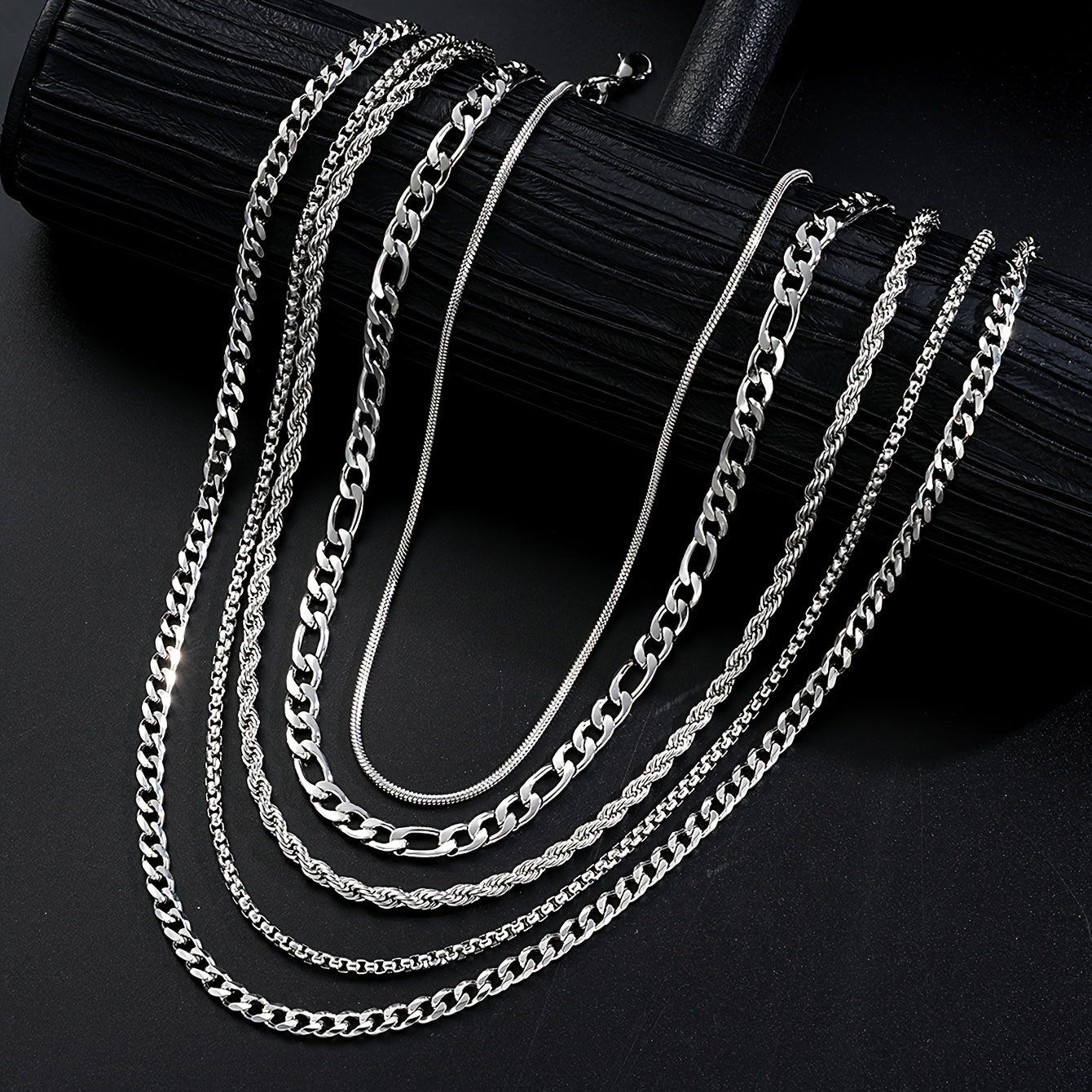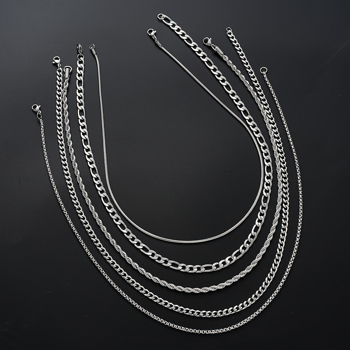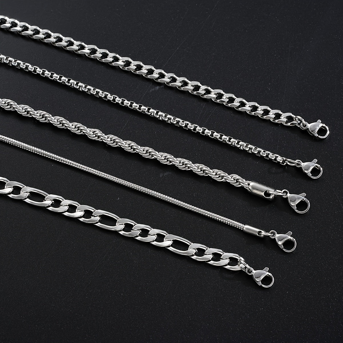 This set includes 5 twisted chain necklaces made of stainless steel, perfect for daily wear and parties. It's a versatile accessory that can complement any outfit and style. This set is a perfect gift for party accessories or modern jewelry enthusiasts.