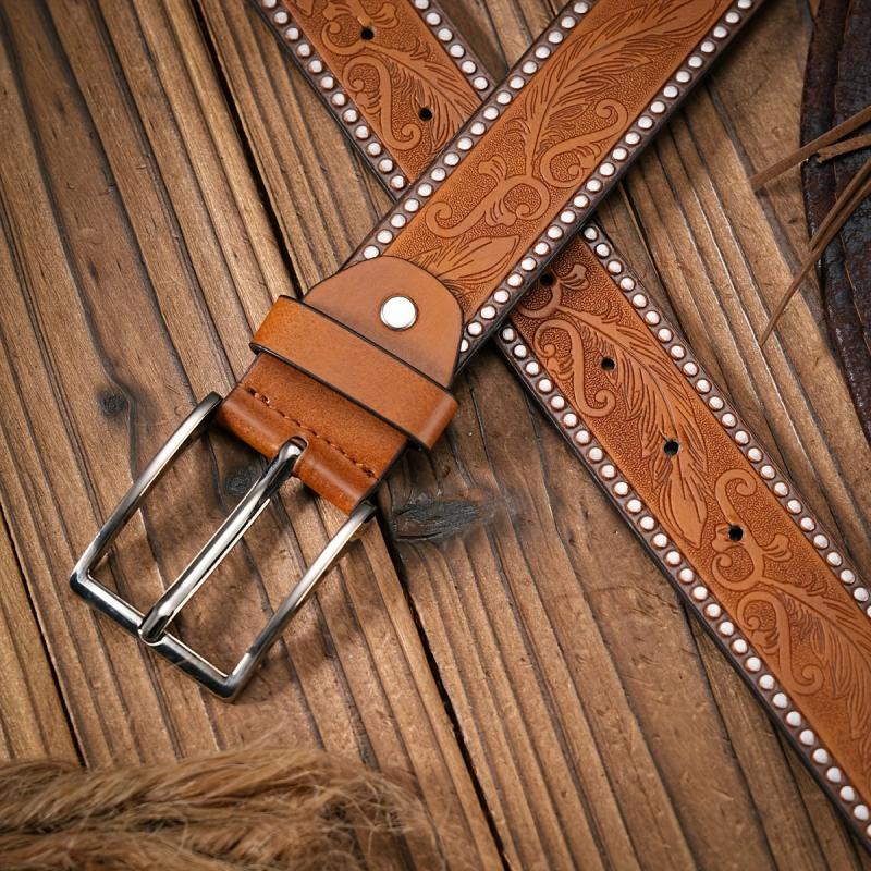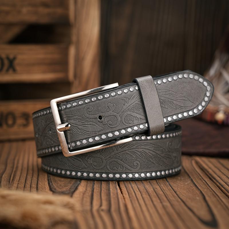 This casual PU belt with embossed design and adjustable alloy buckle is perfect for everyday wear. It includes a packing nail for added convenience.