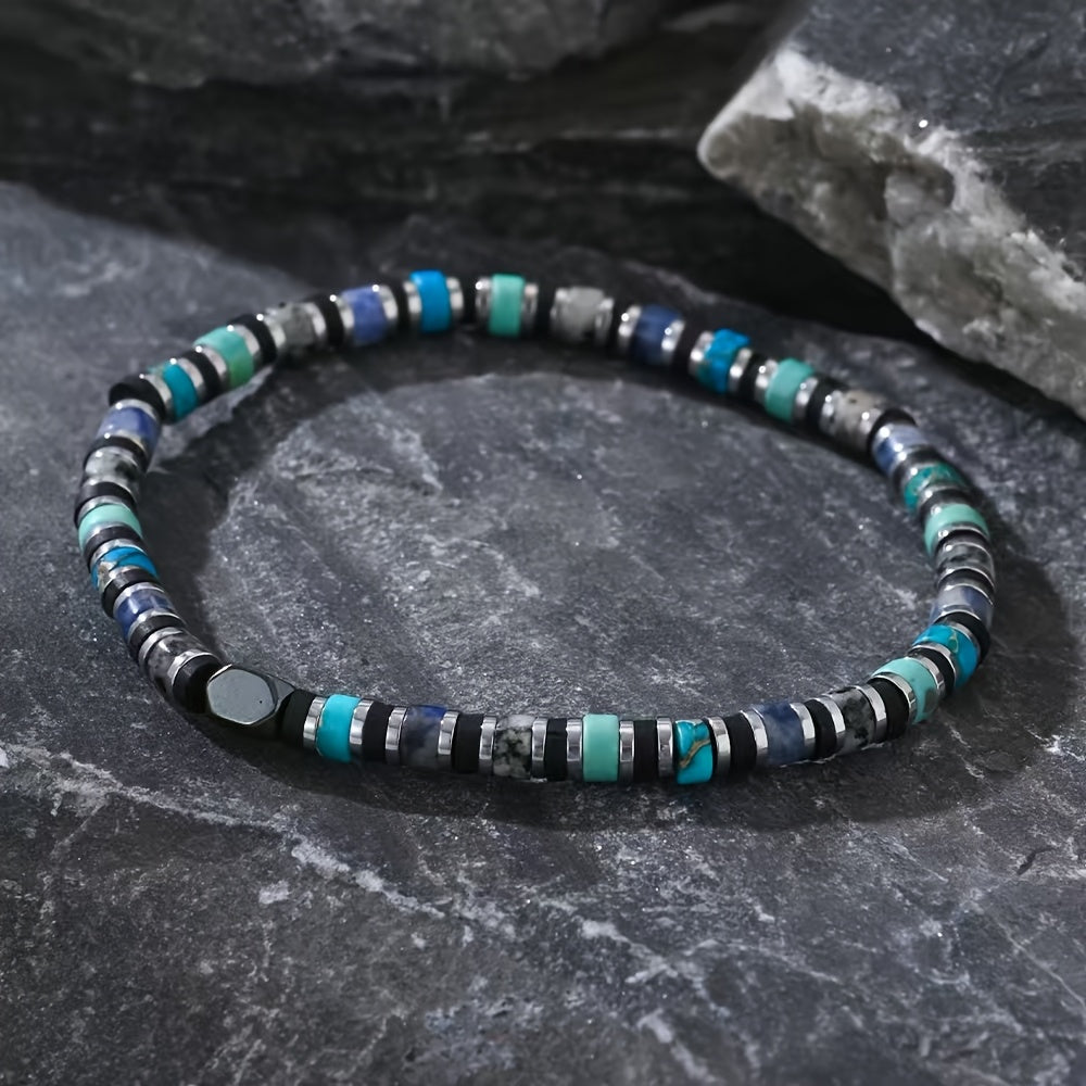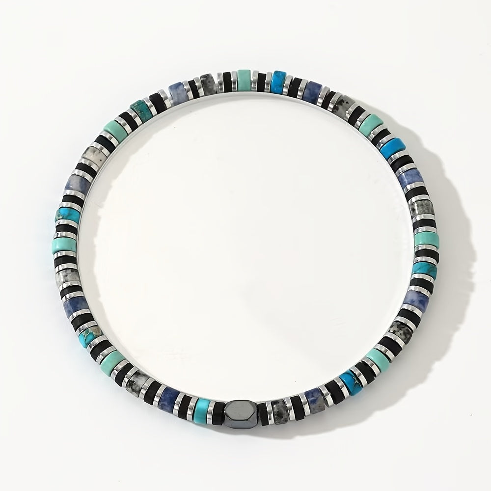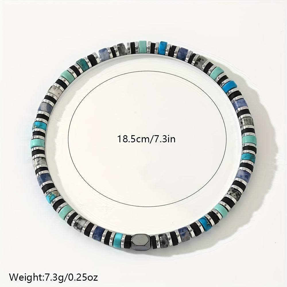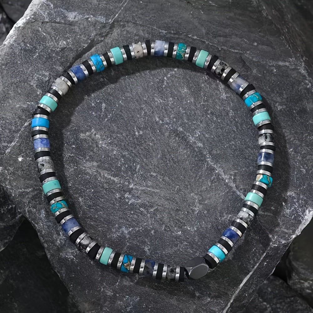 Elevate your style with this Bohemian stone men's bracelet featuring turquoise beads in a retro style design. This accessory adds a unique touch to your outfit.