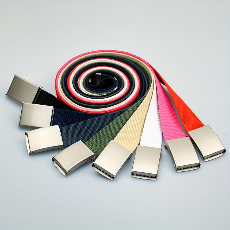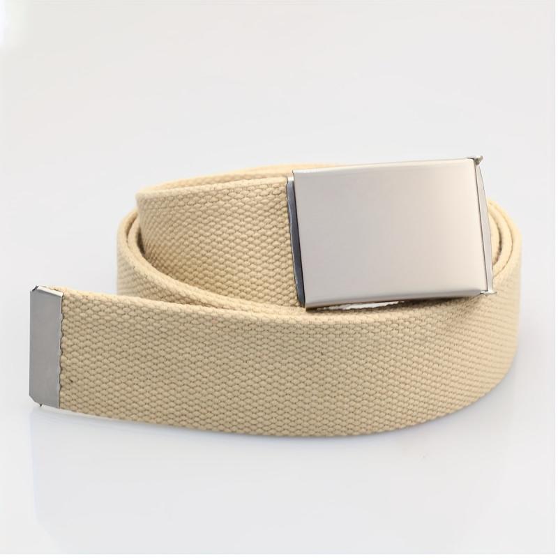 Elevate your look with this stylish canvas waistband featuring a sleek buckle design. Perfect accessory for both men and women.