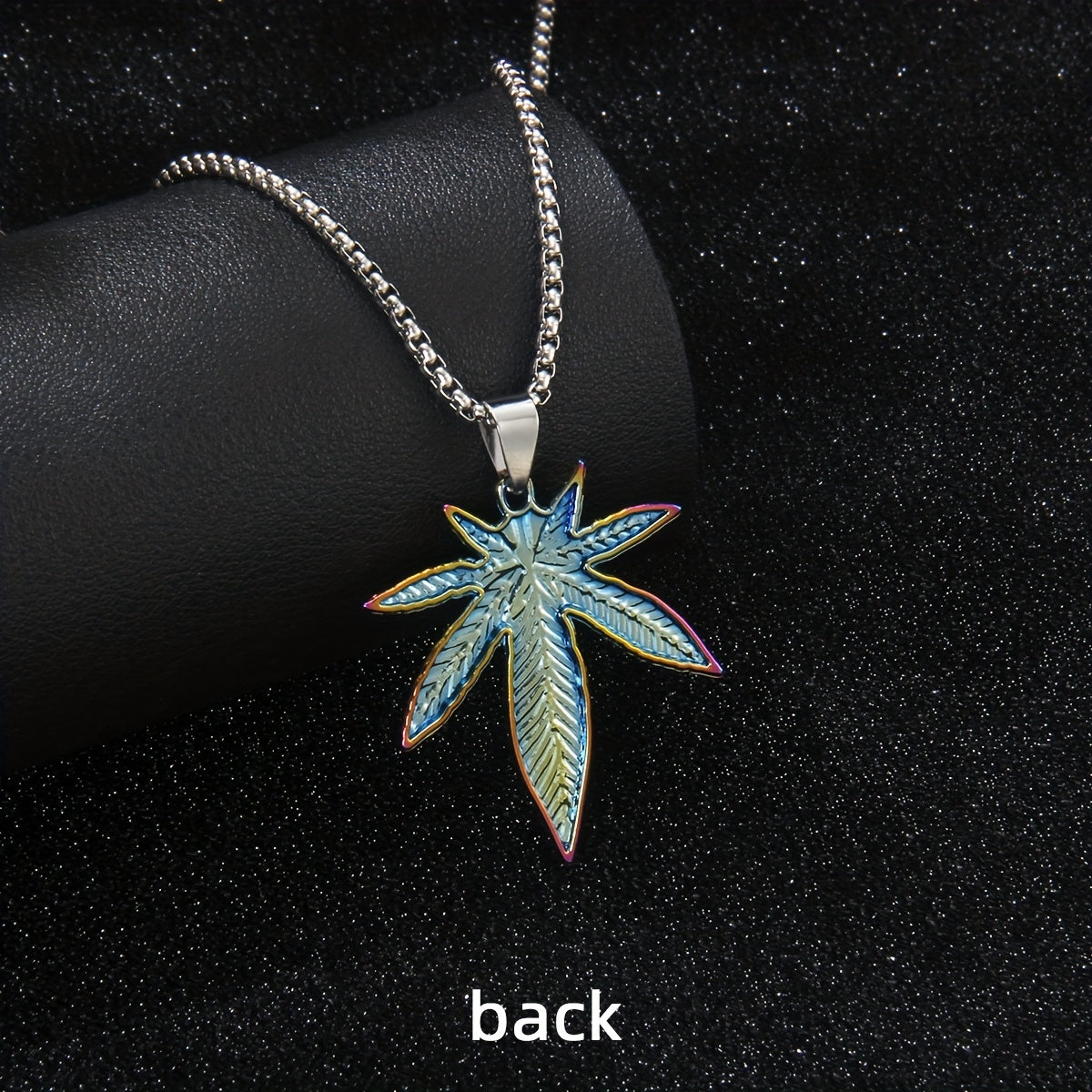 Add a touch of colorful Y2K style to your outfit with this maple leaf pendant necklace. The stainless steel chain adds durability and a modern touch to the design.