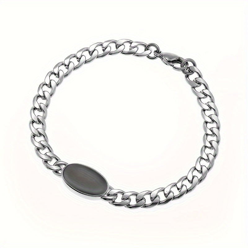 Add a touch of elegance with this classic Cuban chain bracelet featuring an inlaid oval cubic zirconia. Perfect for men and women to accessorize for parties and events.