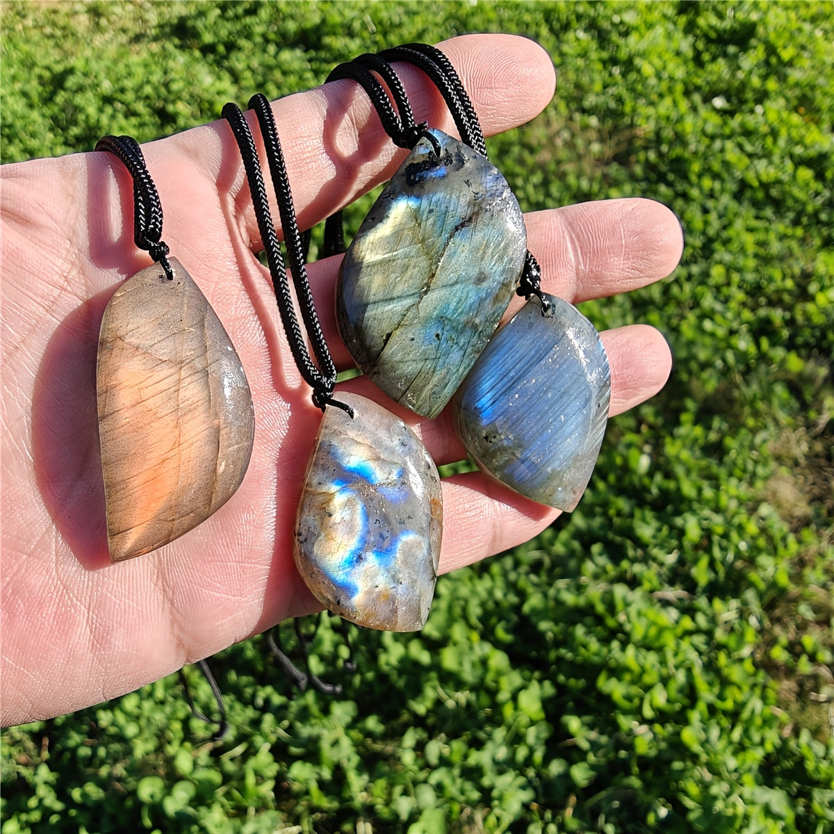 This unique natural crystal pendant necklace features a combination of Labradorite, Moonstone, and Sunstone, making it a perfect gift for both men and women. It is versatile for daily wear and adds a touch of natural beauty to any outfit.