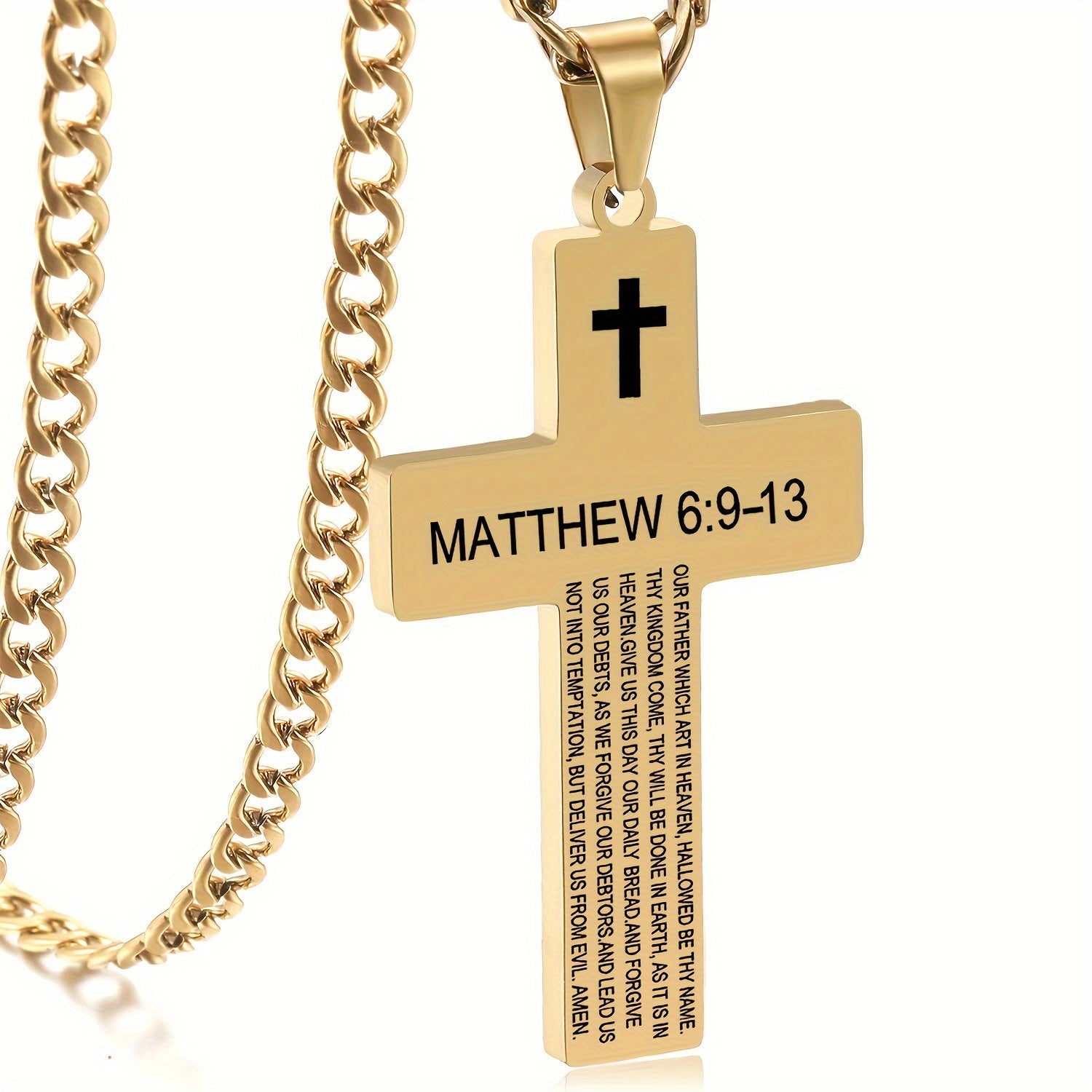 Men's Bible Verse Cross Pendant Necklace Lord's Prayer Scripture Chain