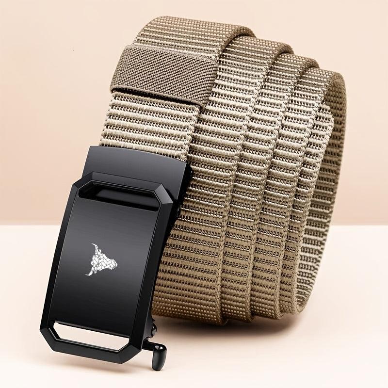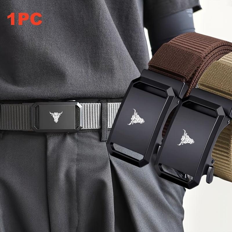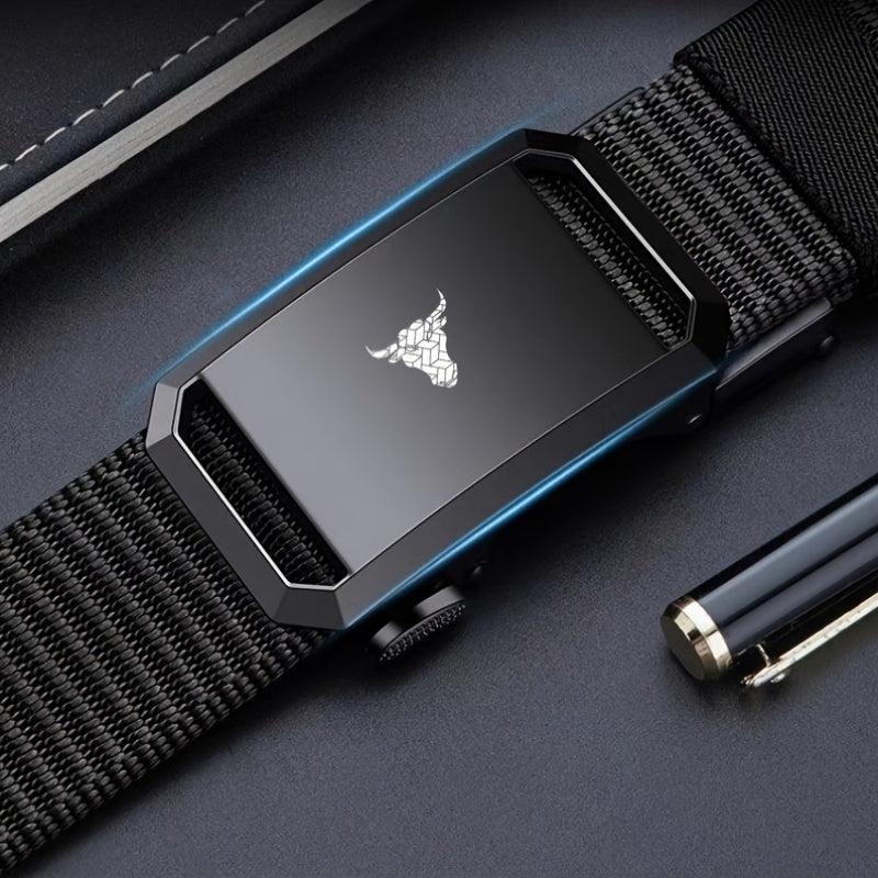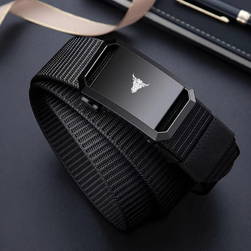This men's canvas belt features an automatic buckle and a stylish bull head pattern. It's the ideal gift for a casual style.
