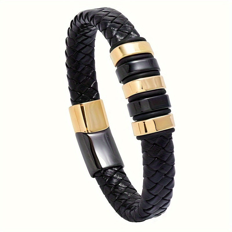 Add a touch of style to your outfit with this trendy faux leather bracelet featuring a magnetic clasp. Made of high-quality alloy, this bracelet is a fashionable accessory for men.