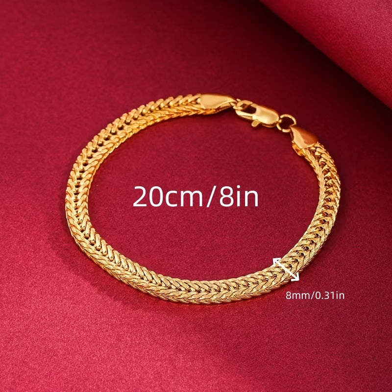 This men's golden tone braided metal bracelet is a versatile accessory that can be worn for both casual and formal occasions. It features a lobster claw clasp for easy wear and measures 8 inches in length.