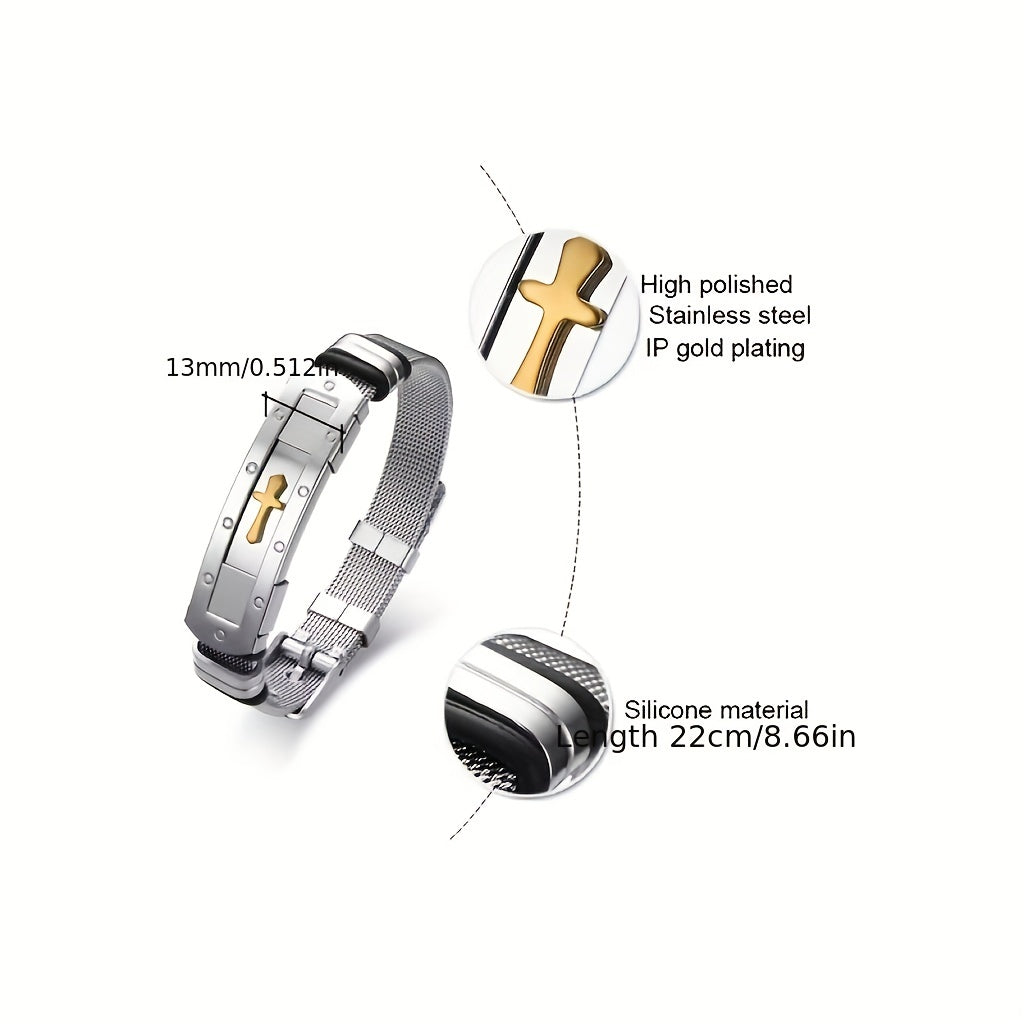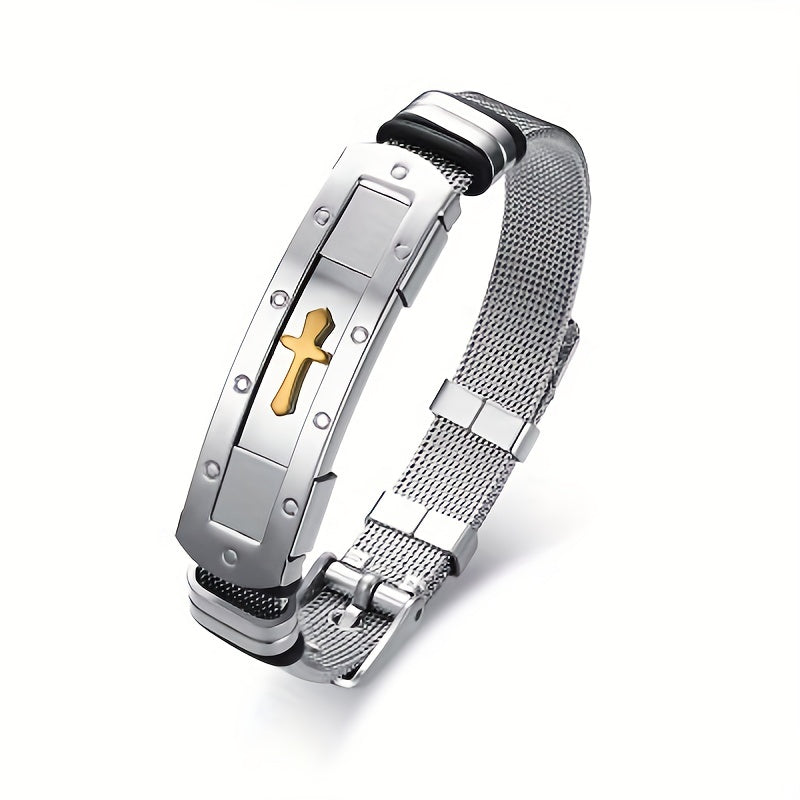 This men's bracelet features a stainless steel cross design, perfect for a European and American casual style.
