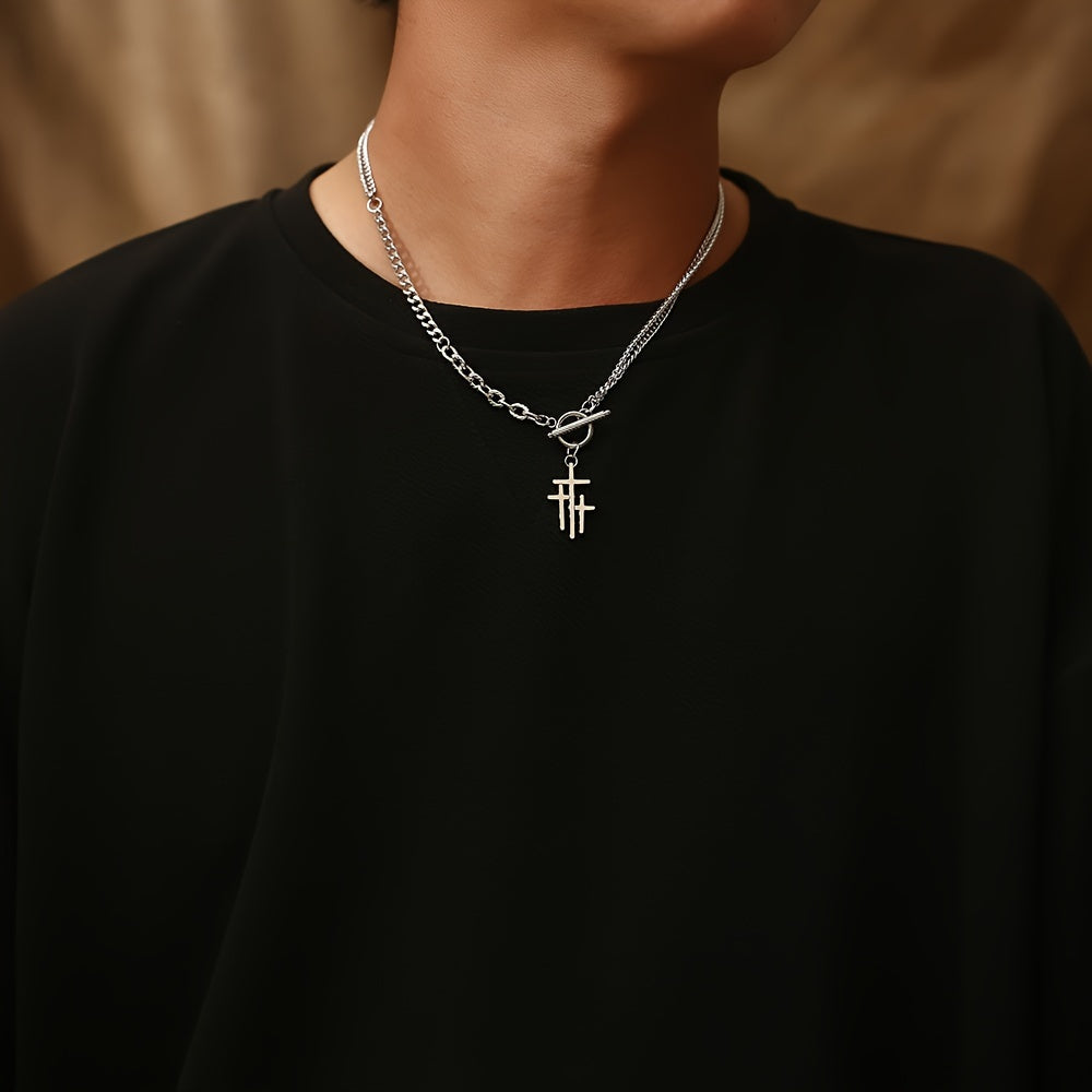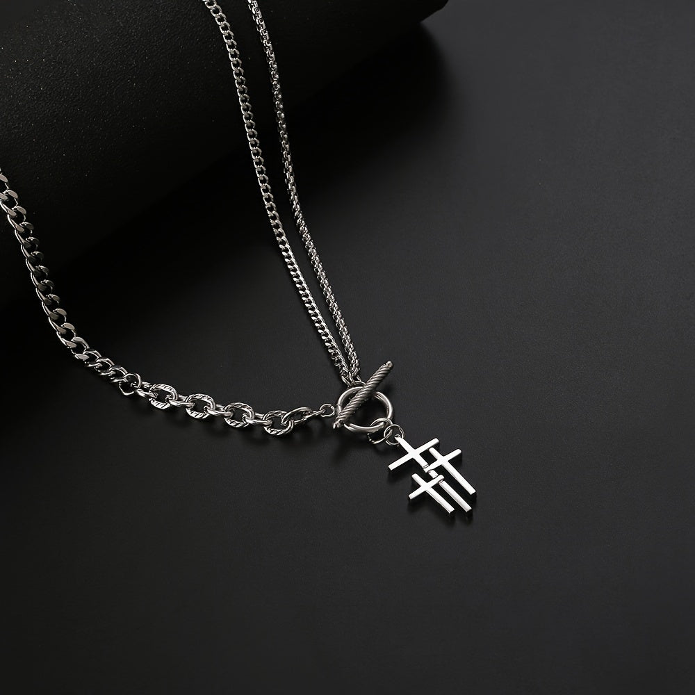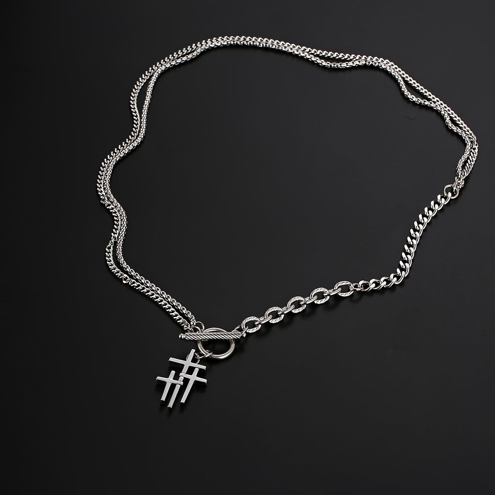 This necklace features a cross overlapping design, perfect for a European and American style. Made of high-quality titanium steel, this versatile pendant chain is a great accessory for any outfit.