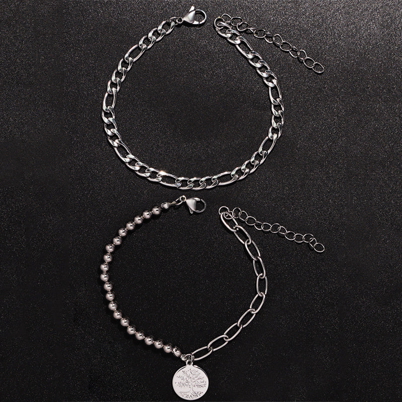 This set includes 2 punk style Tree of Life copper pendants with a stainless steel chain men's bracelet. The unique design adds a touch of edgy style to your look.