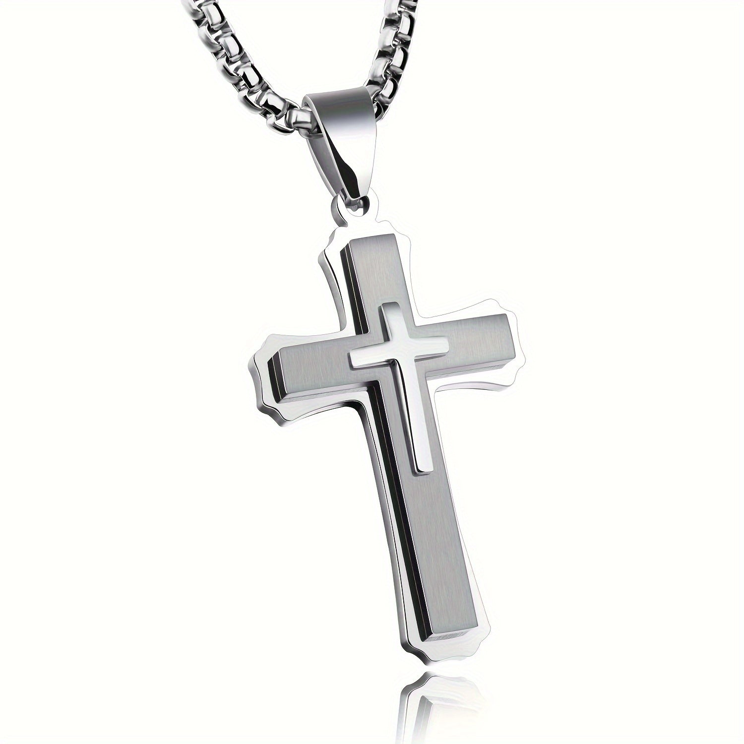 This titanium steel cross pendant necklace is a perfect gift for men, ideal for Christmas or any special occasion. The necklace is stylish and durable, making it a great accessory for any outfit.
