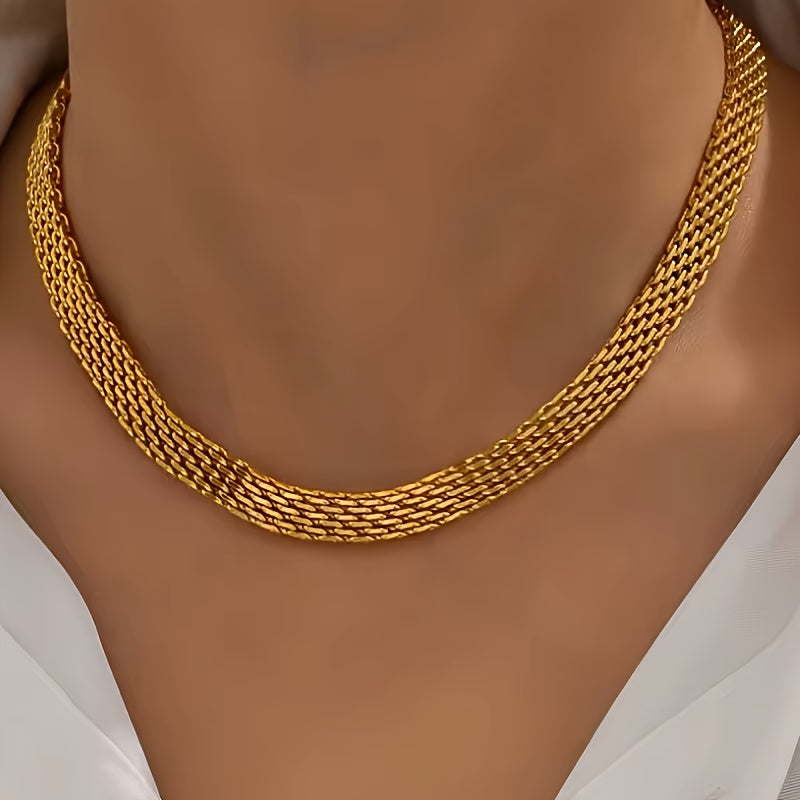 This rope chain necklace is versatile for both daily wear and formal occasions. It is made of 316L stainless steel with a luxurious 18K gold plating, ensuring durability and a beautiful shine.