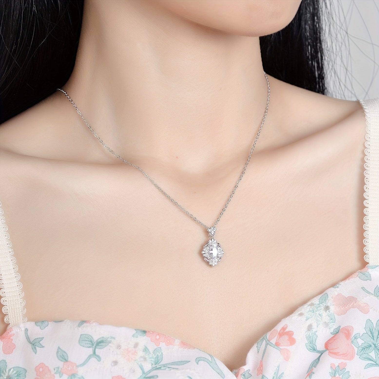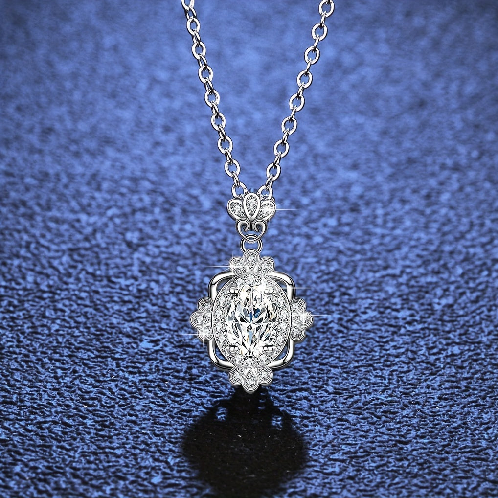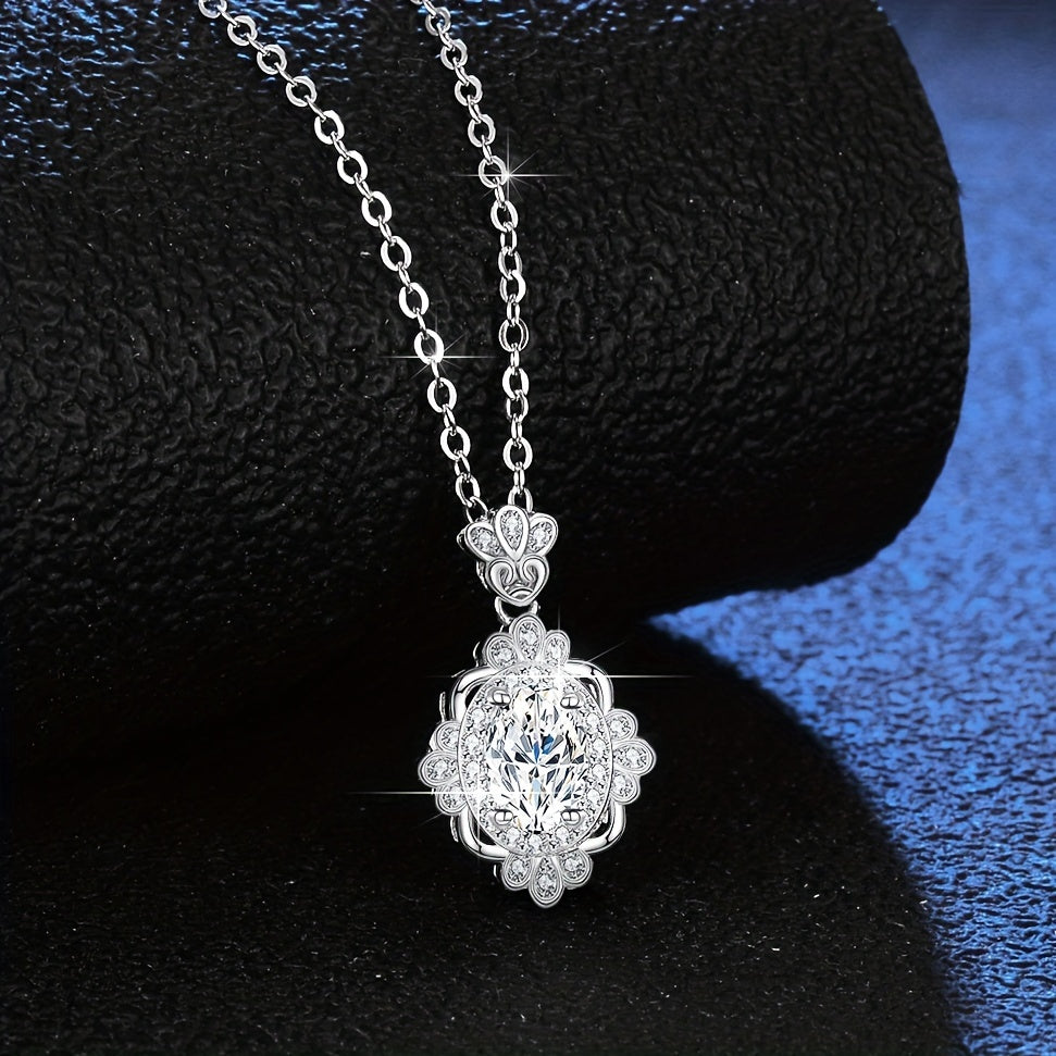 Diese elegante Halskette verfügt über einen Ei-förmigen Moissanit von 1 CT 5 7 mm in einem 925 silbrigen ovalen Anhänger. Es macht eine atemberaubende Ergänzung zu jeder Schmuckkollektion.