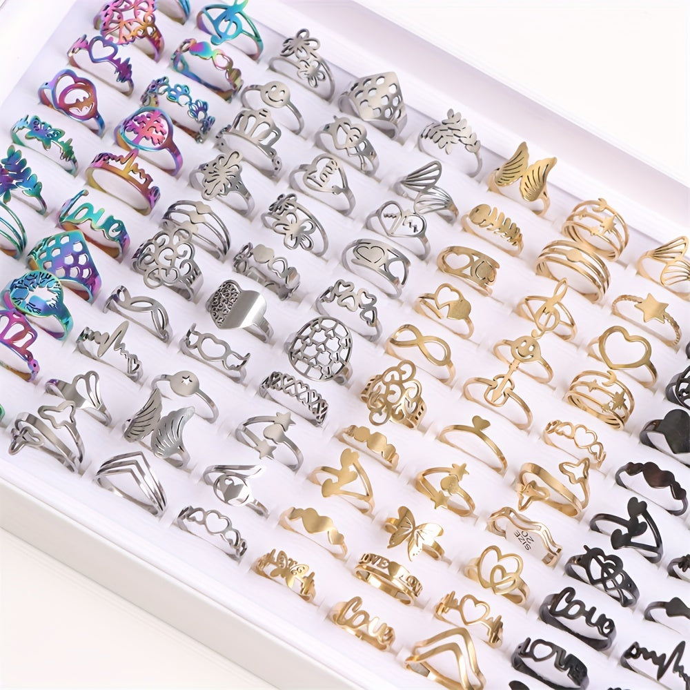 These stainless steel rings feature lover heart, crown, and musical note design, perfect for parties and everyday wear.