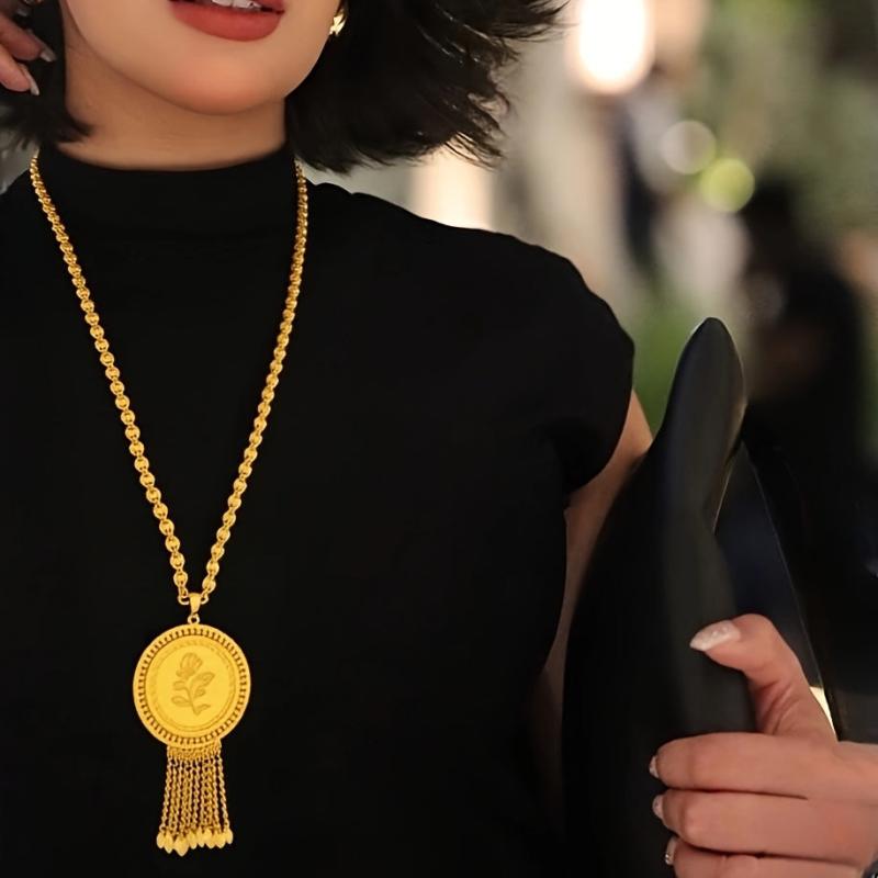 24K Plated Middle Eastern Ramadan Long Necklace for Women