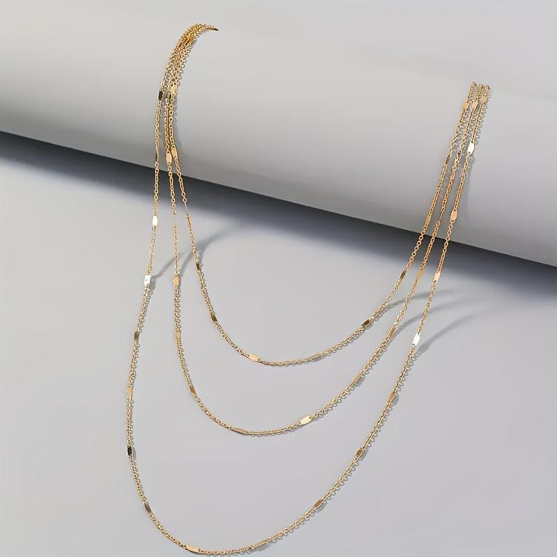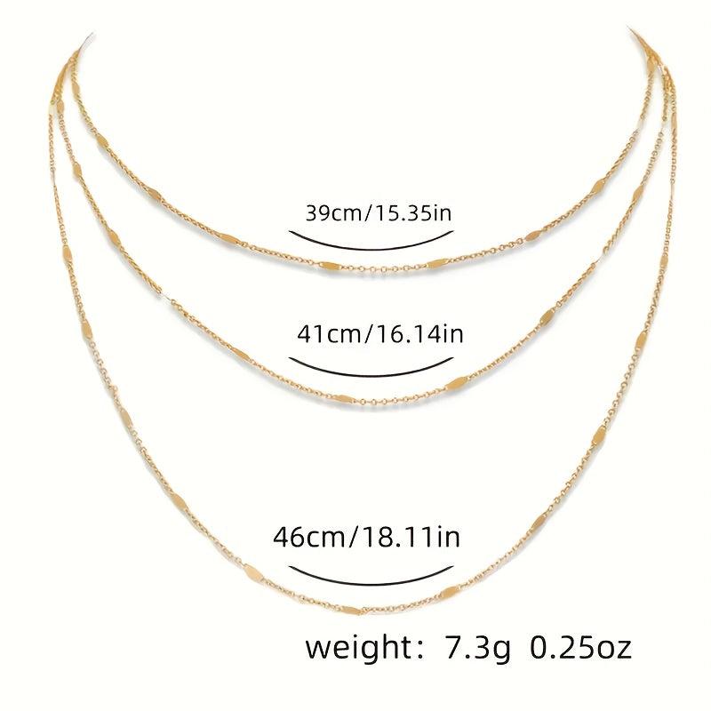 This stunning 3 layer chain necklace is crafted from high-quality stainless steel with a golden tone finish. It is perfect for daily wear, parties, vacations, and makes a great year-round jewelry gift.