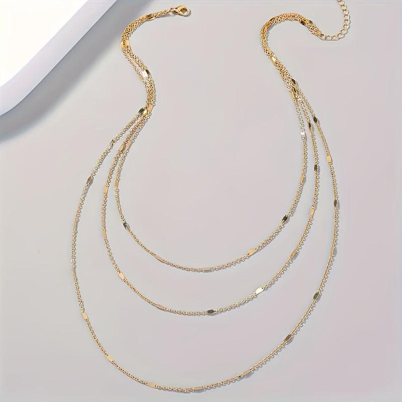 3 Layer Chain Necklace for Women Stainless Steel Golden Tone Stylish & Versatile