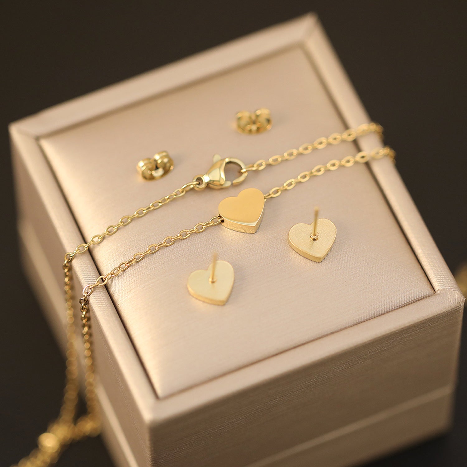 Elegant stainless steel jewelry set perfect for special occasions. Features heart pendant necklace and matching earrings. Ideal for banquets, parties, vacations, dates, and concerts.