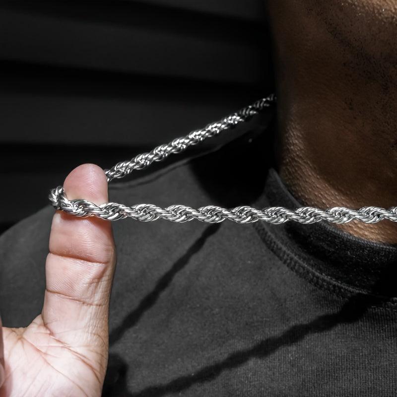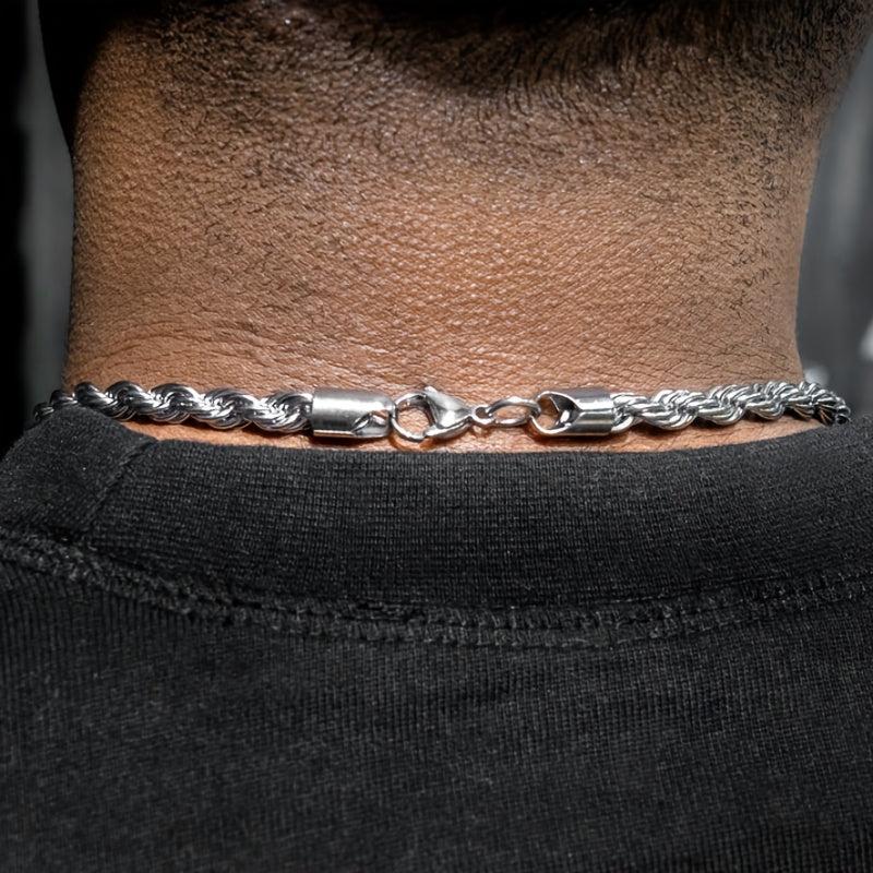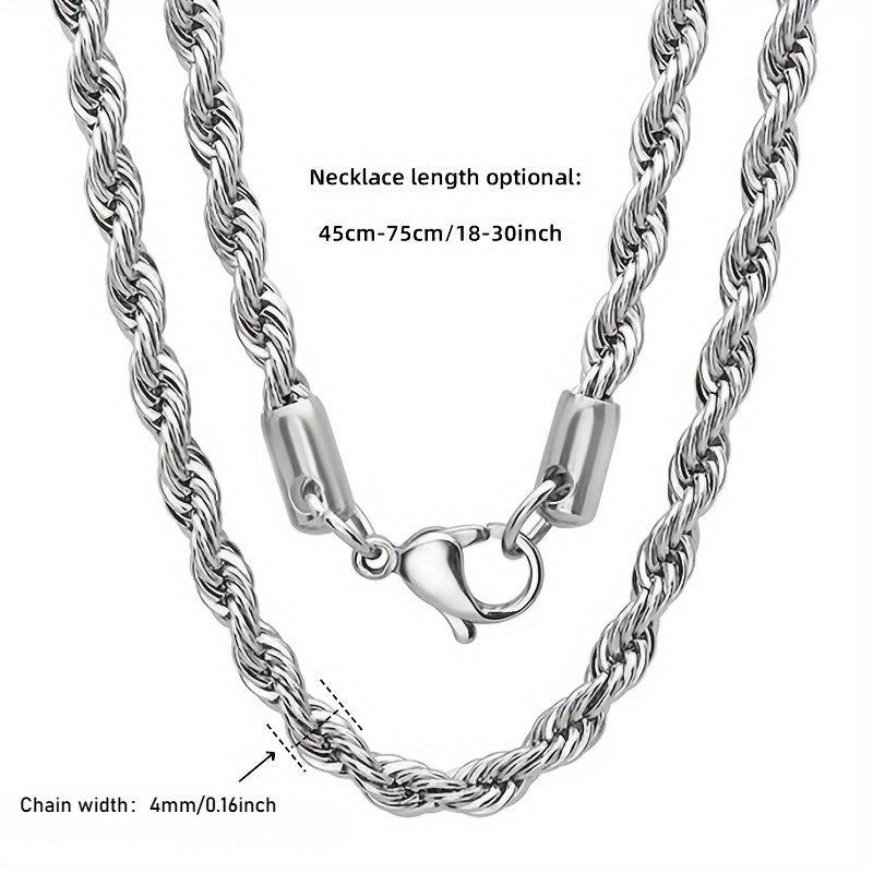 This 4mm stainless steel braided rope necklace is perfect for men and women. It is durable for everyday wear and special occasions. Makes a great gift idea for fathers.