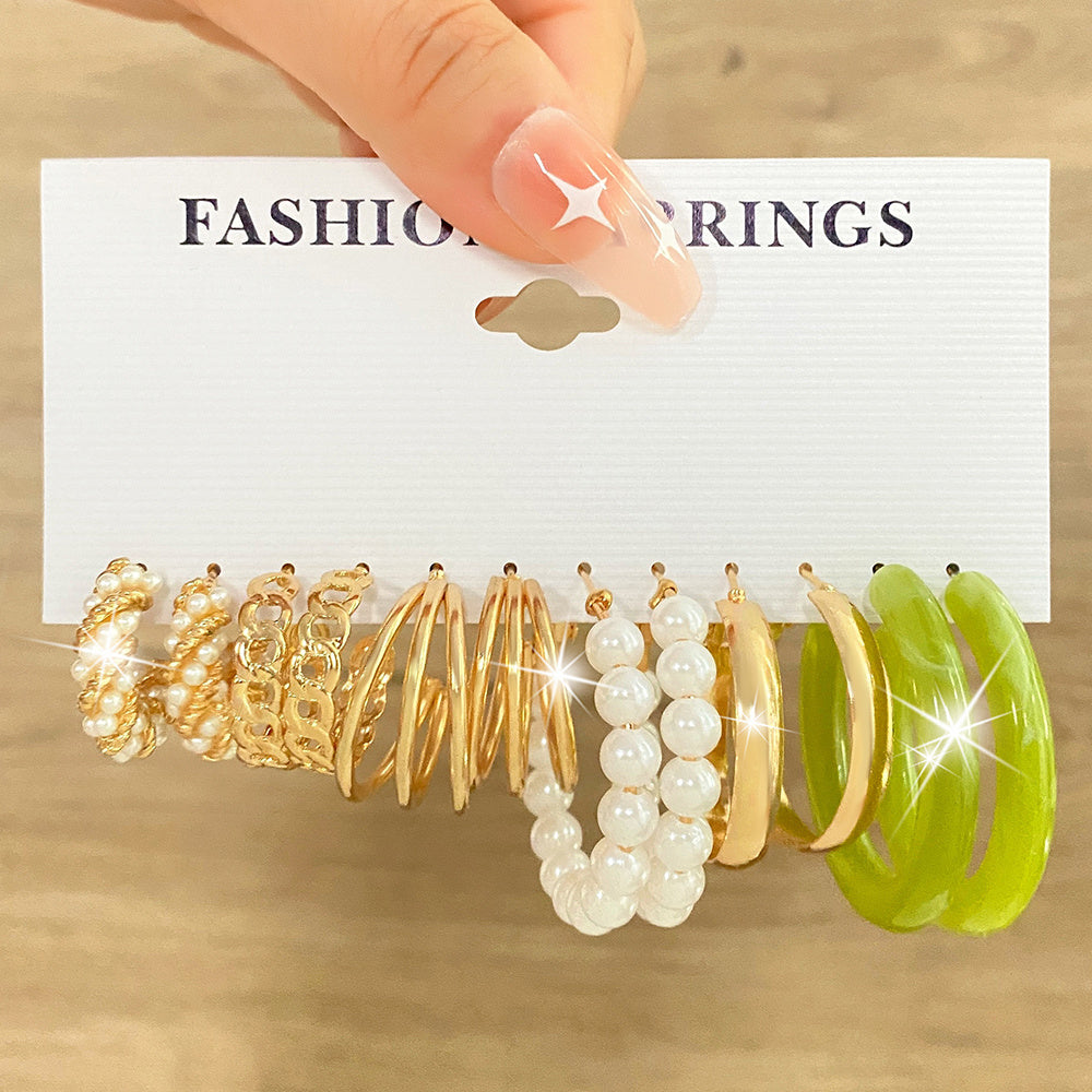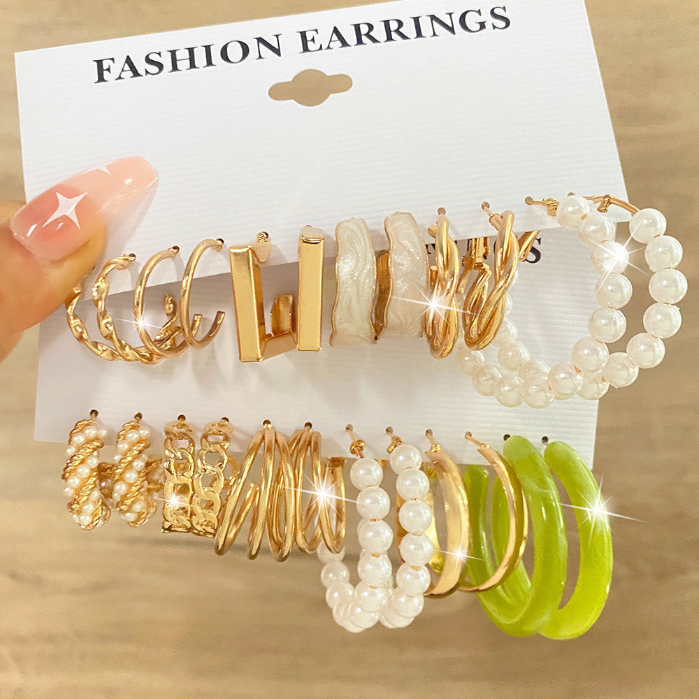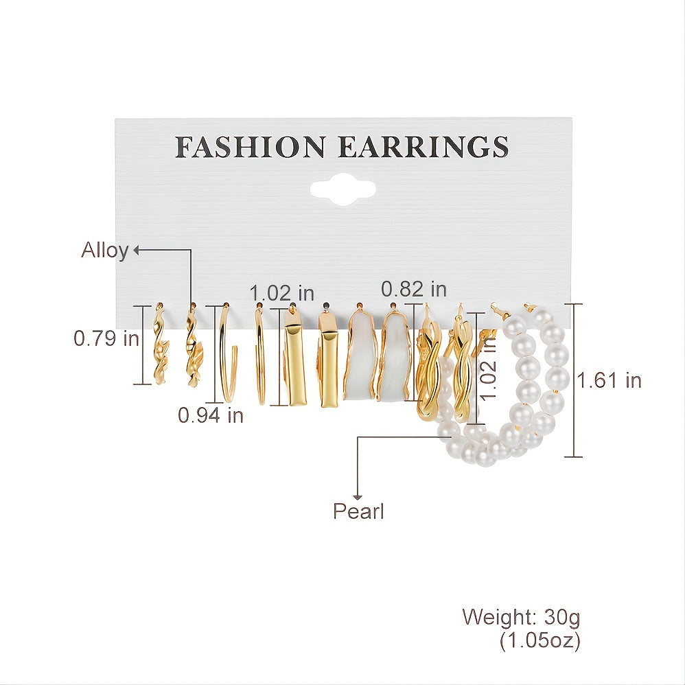 Elevate your style with this set of 6 geometric pearl resin earrings. Perfect for any occasion, these earrings add a touch of elegance to your look.