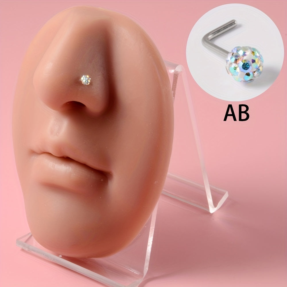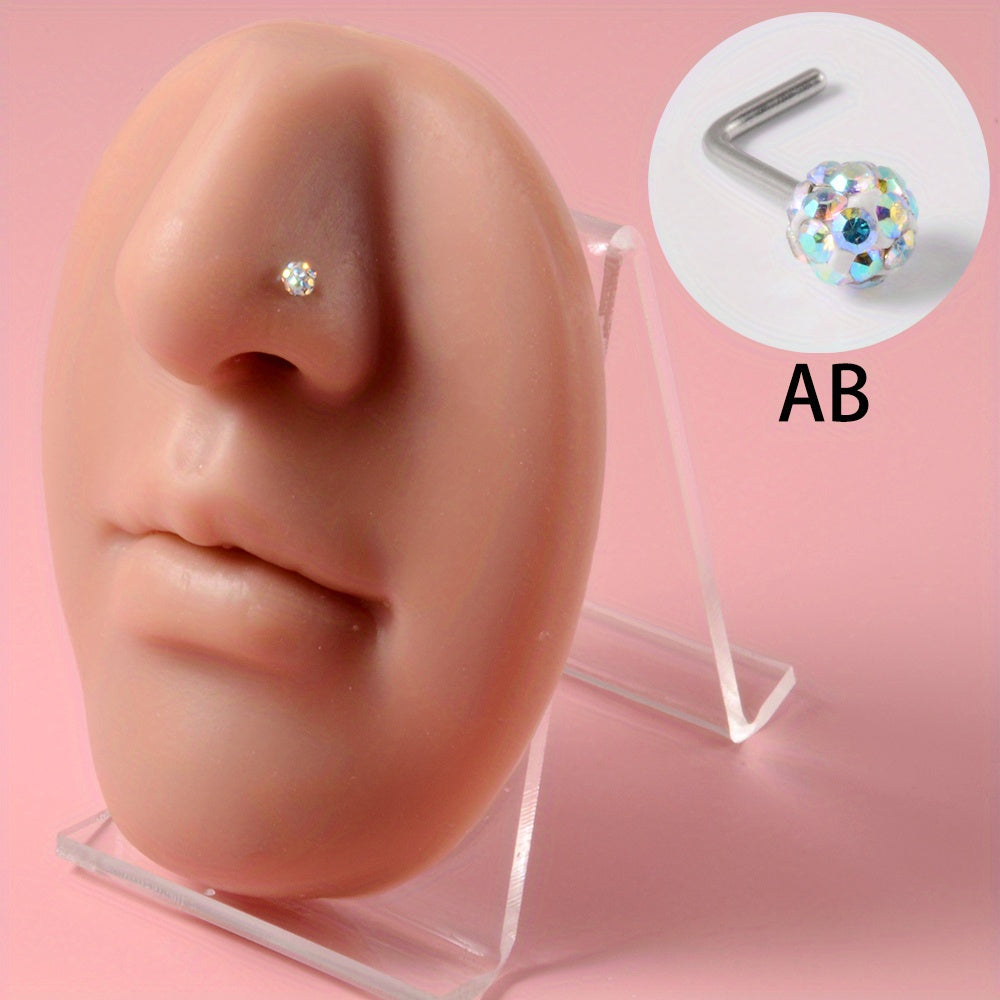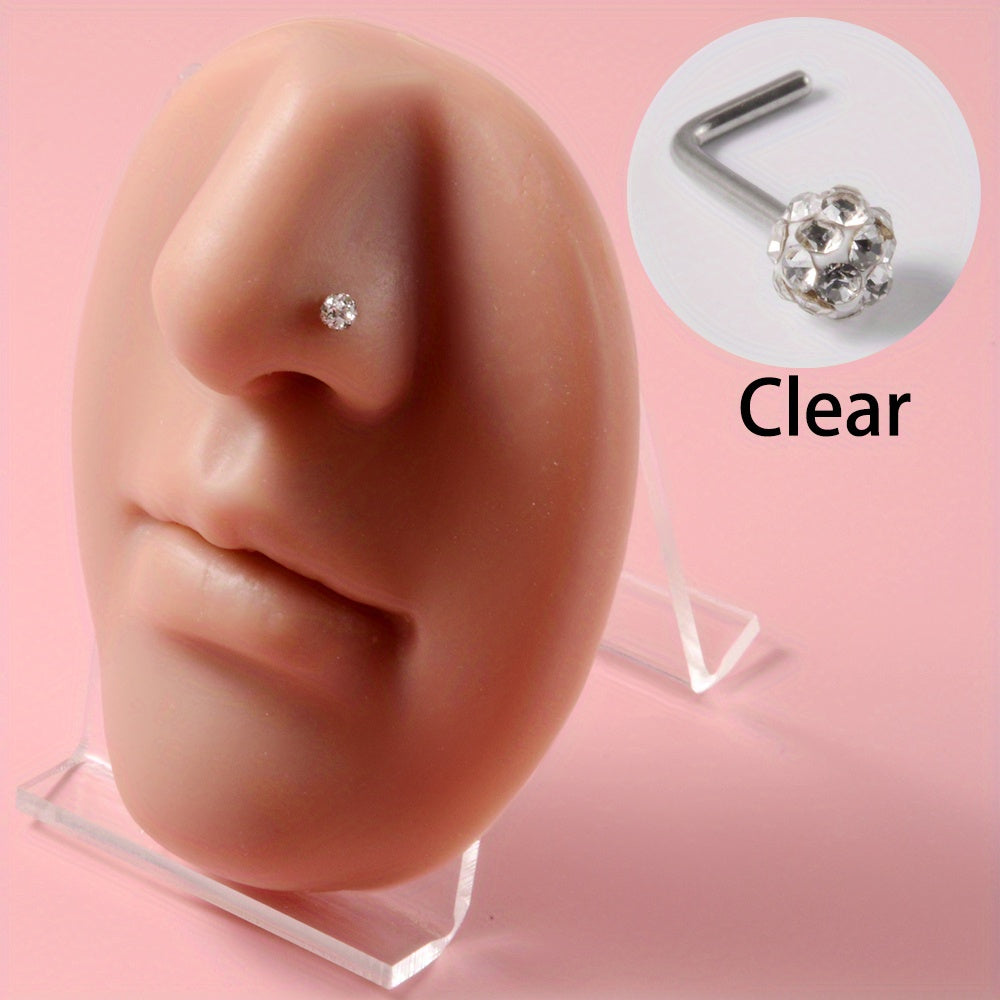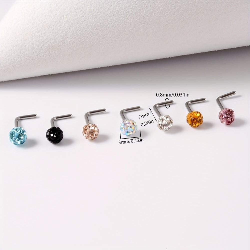 Sparkle with these 7 rhinestone ball nose studs made of stainless steel. The curved rod design adds uniqueness to your body piercing jewelry collection.
