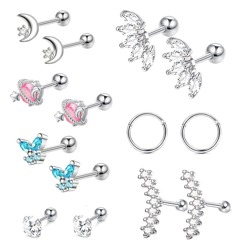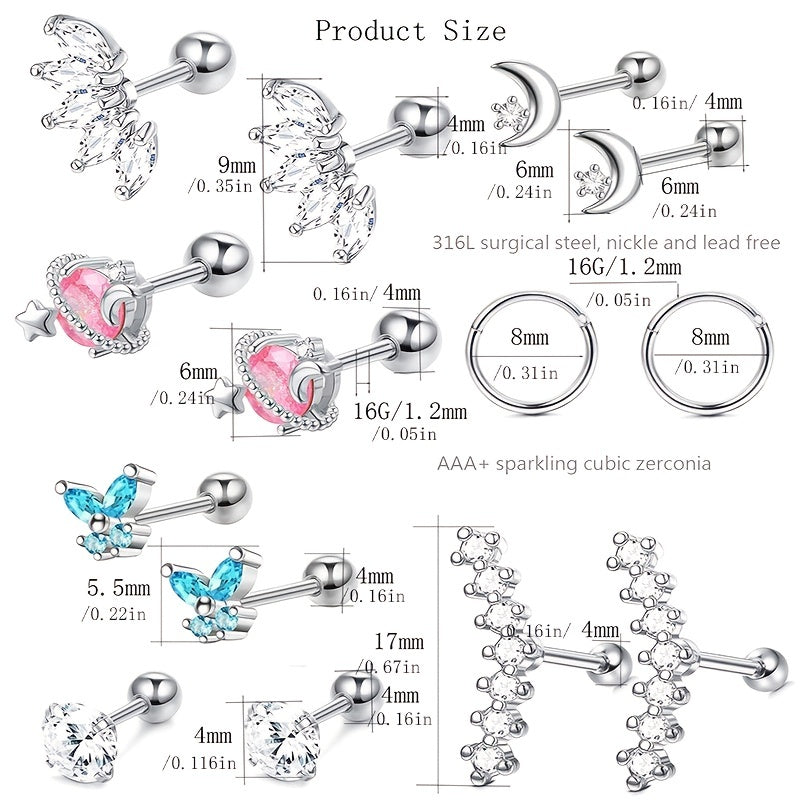 This set includes 7 pairs of stud earrings made of stainless steel and zircon, perfect for party and daily wear. Suitable for both men and women.
