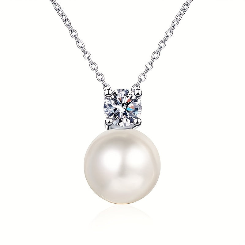 Diese Halskette ist elegant und schick und verfügt über eine glänzende Perle, die mit einem funkelnden 0,5 -CT -Moissanitstein auf einer zarten Schlüsselbeinkette akzentuiert ist.