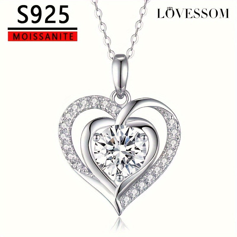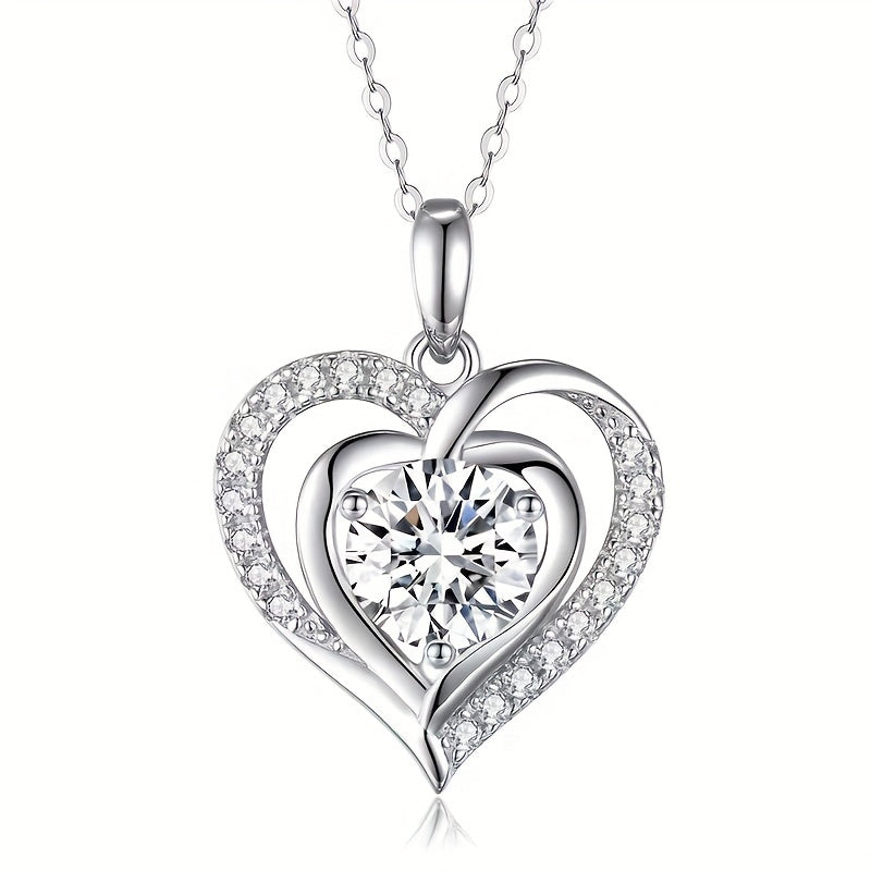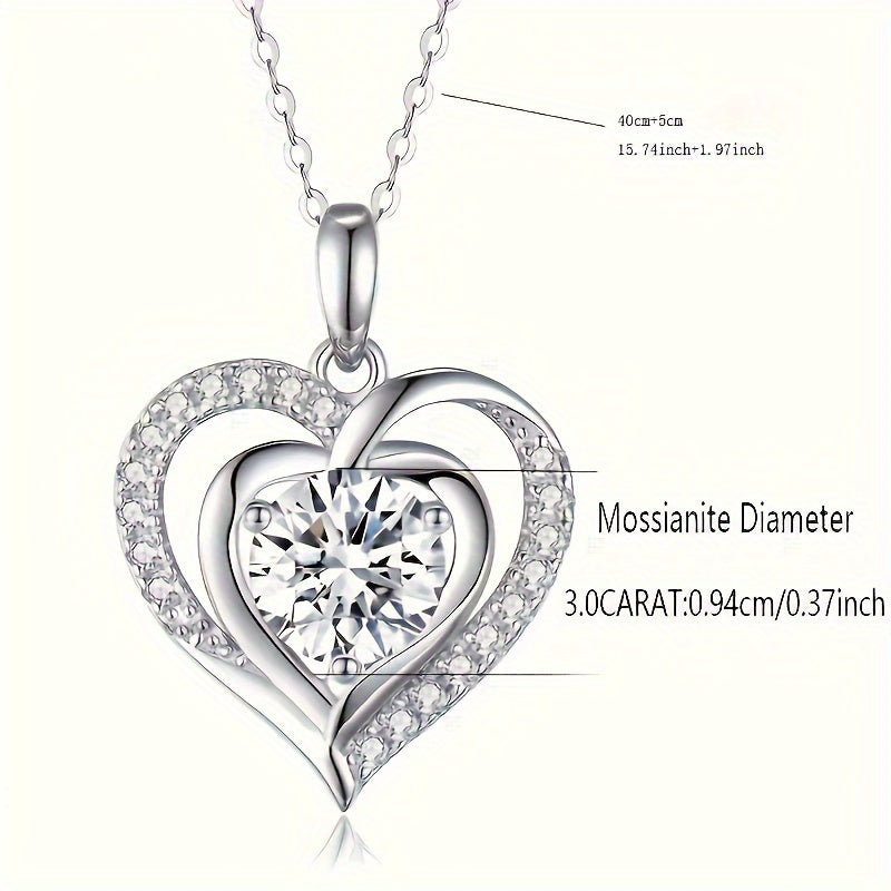 925 Silver 3 Carat Moissanite Heart to Heart Necklace
