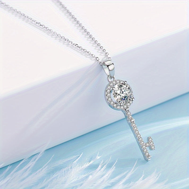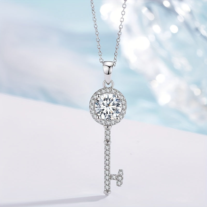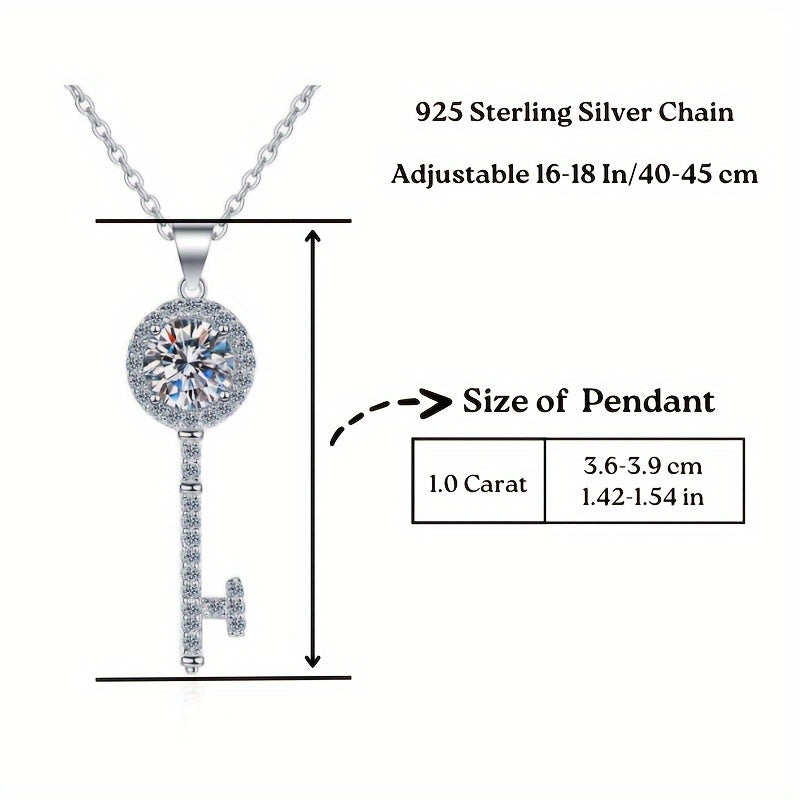 Elegante Frauen Halskette aus 925 Sterlingsilber mit einem Anhänger der Trottelkette, der mit einem plattierten Moissan -Schlüssel geschmückt ist. Der funkelnde Moissanit verleiht diesem stilvollen Accessoire einen Hauch von Luxus.