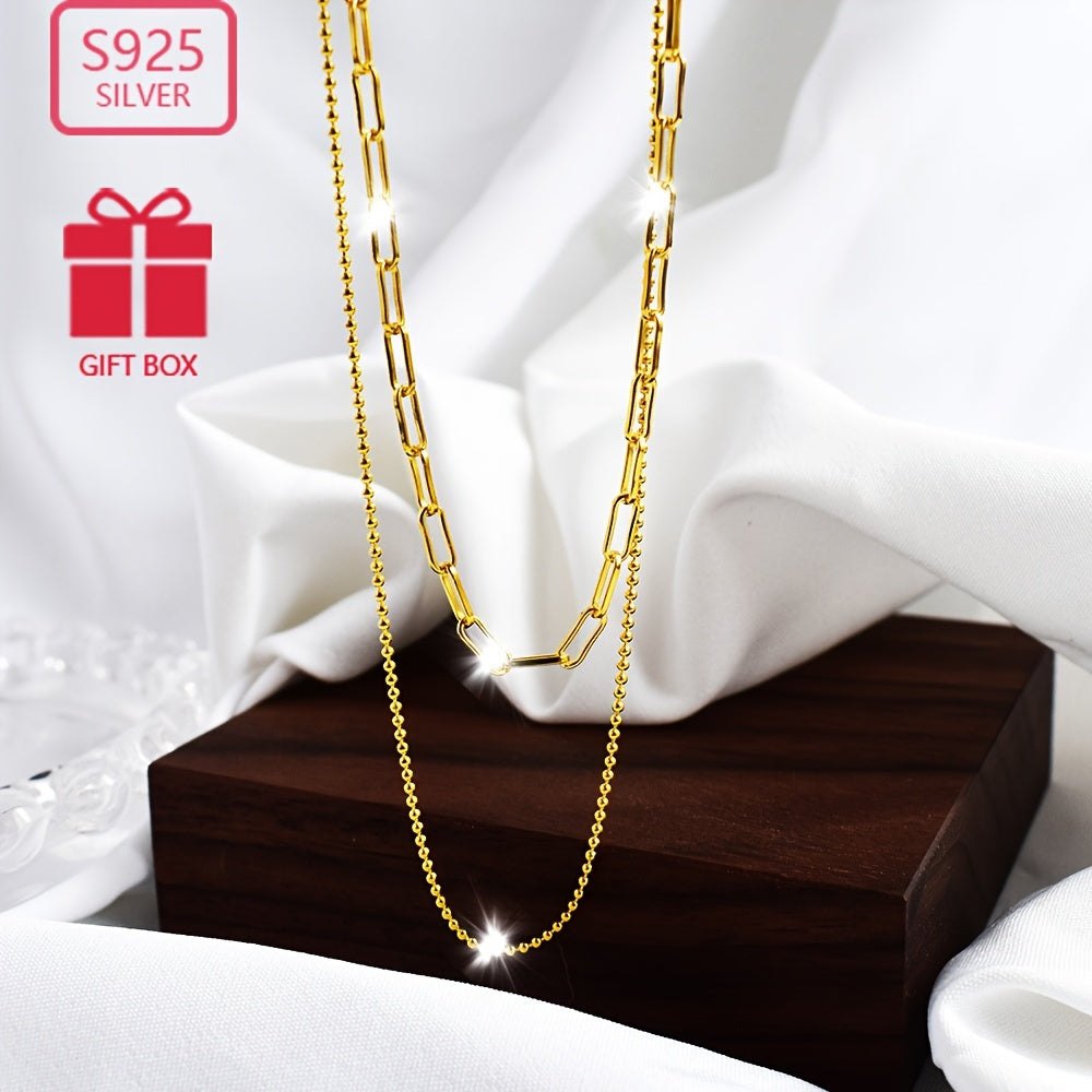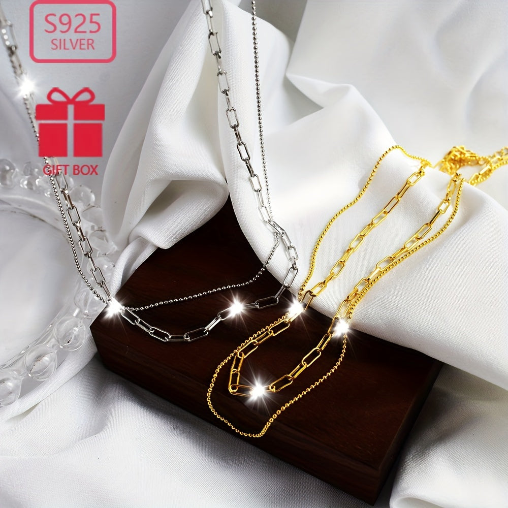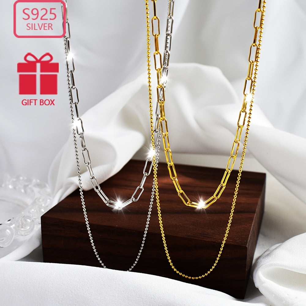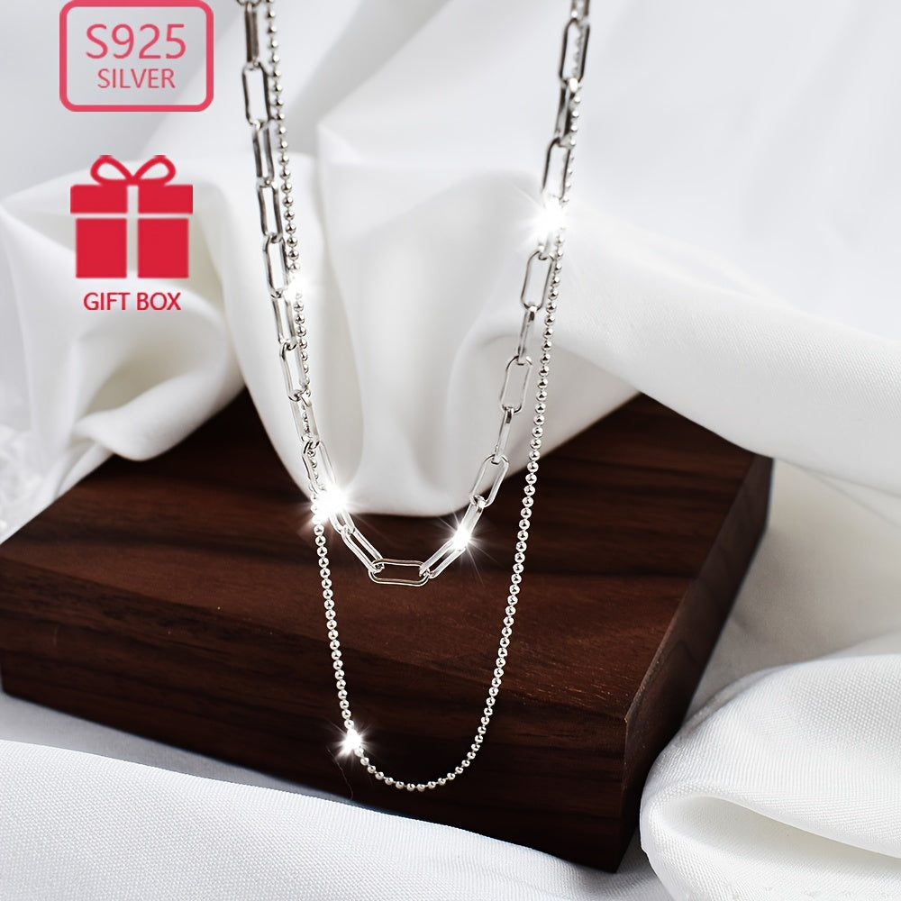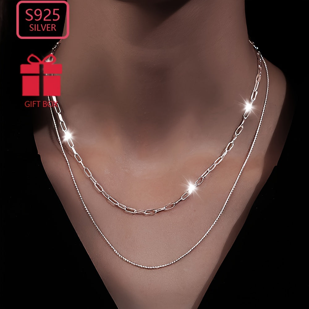Diese 925 -Halskette mit silbernen Doppelschicht verleiht Ihrer Herbst- und Wintergarderobe einen Hauch von Eleganz. Leuchtend und funkelt, es ist perfekt für den täglichen Verschleiß.