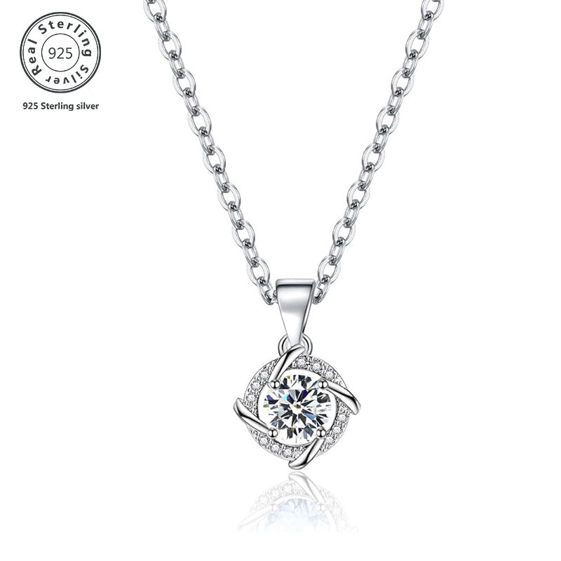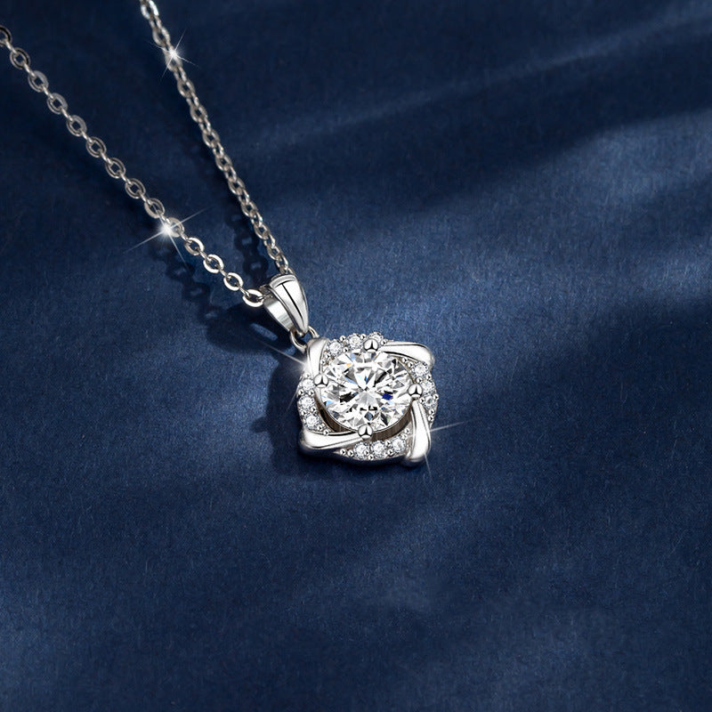 Diese elegante Anhängerkette verfügt über ein Windmühlenform -Klee -Design, das mit einem funkelnden Moissanitstein geschmückt ist. Dieser Anhänger ist ein perfektes Accessoire für jeden Anlass.