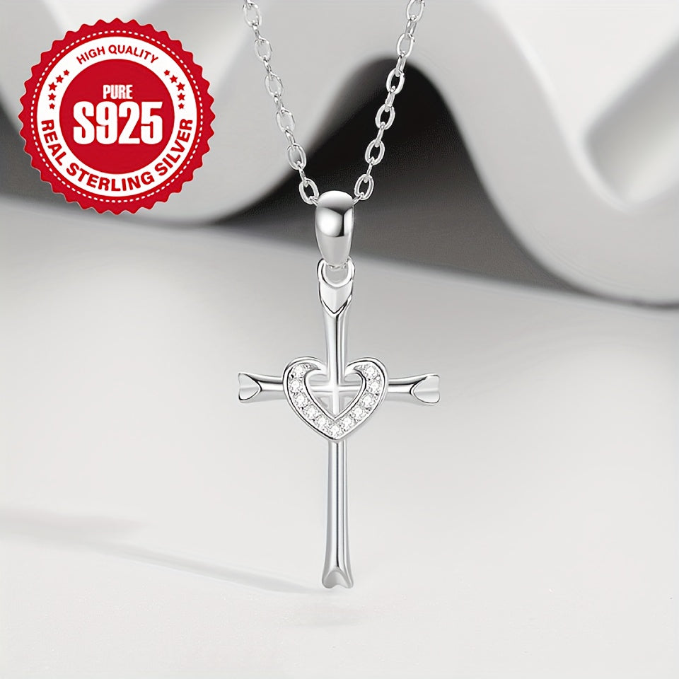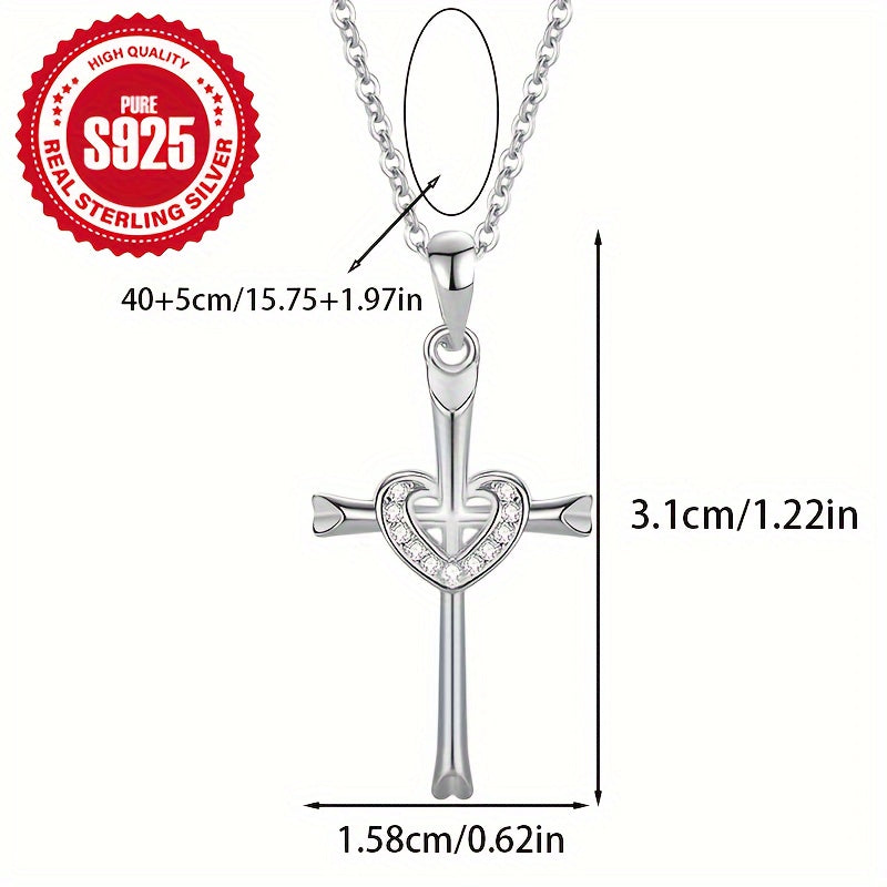 925 Silberkreuz Herz Anhänger Halskette mit Zirkonia Religiöses Symbol