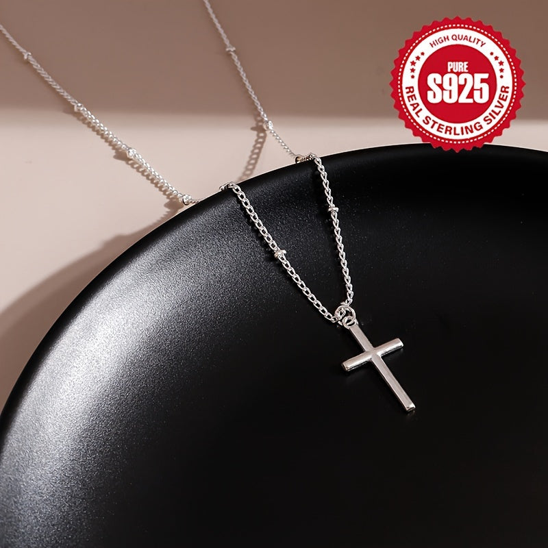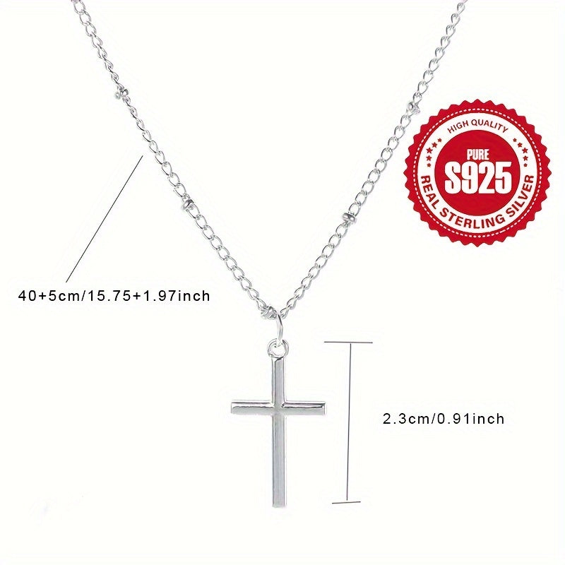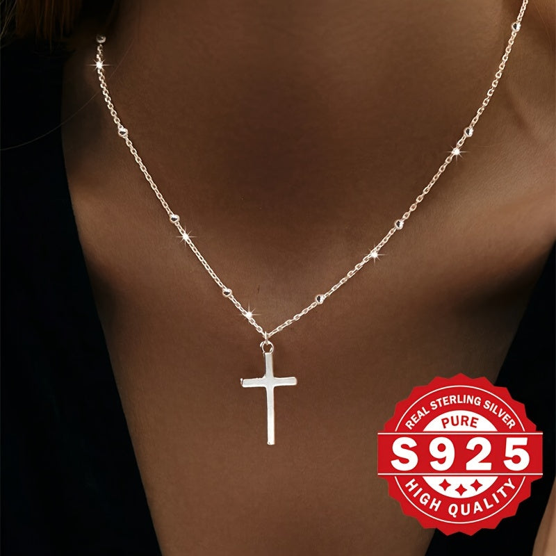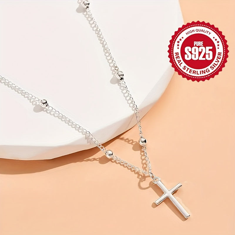 925 Silver Cross Bead Necklace for Women Light Low Allergy 3 4g
