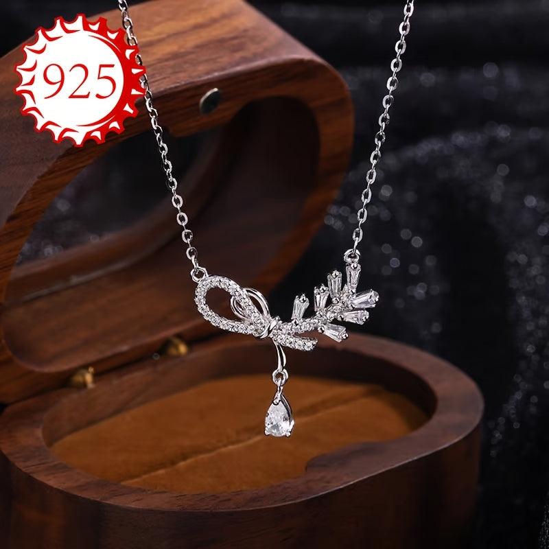 925 Silver Bowknot Pendant Necklace Hypoallergenic Single Strand