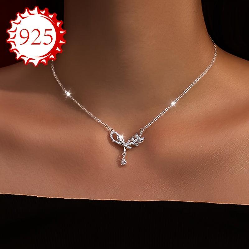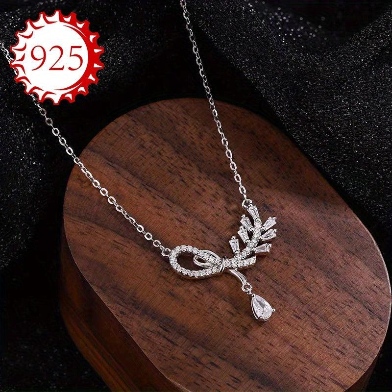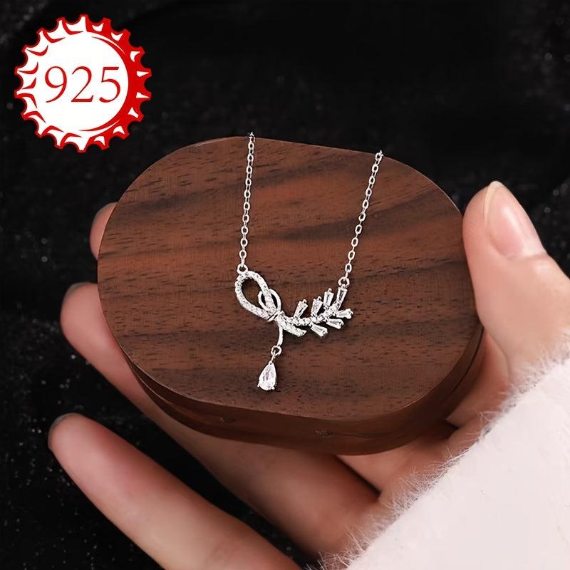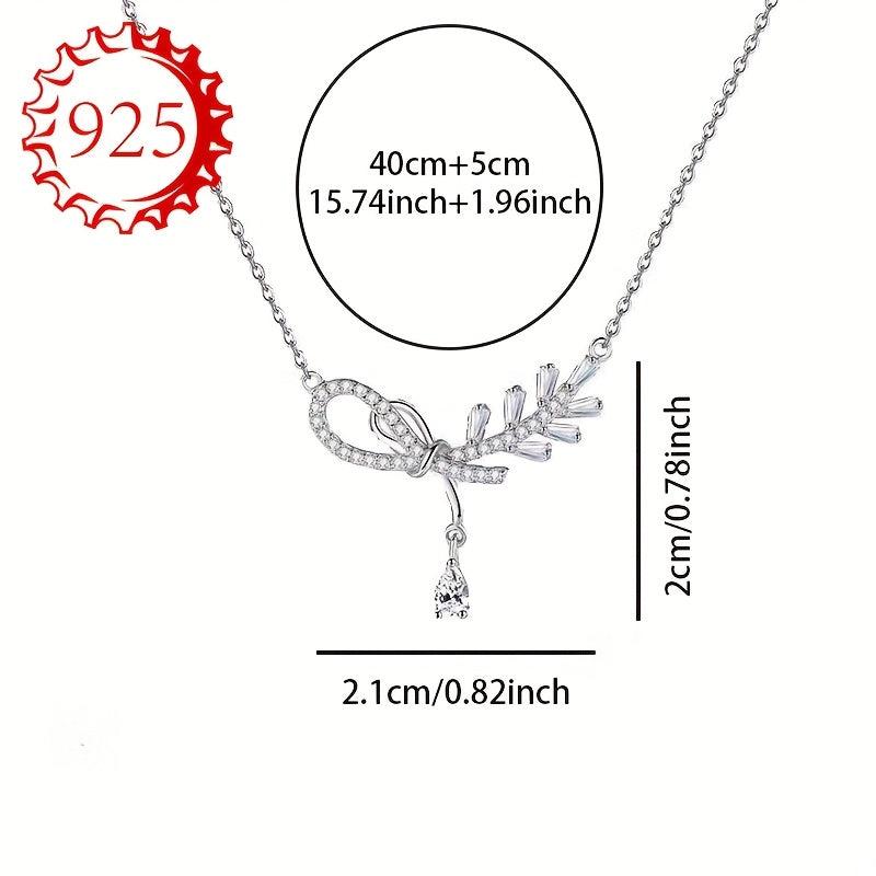 Elegant 925 silver necklace with a unique bowknot wheat pendant. This high-end collarbone chain is versatile and suitable for all seasons.