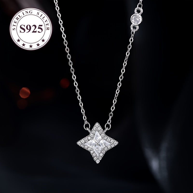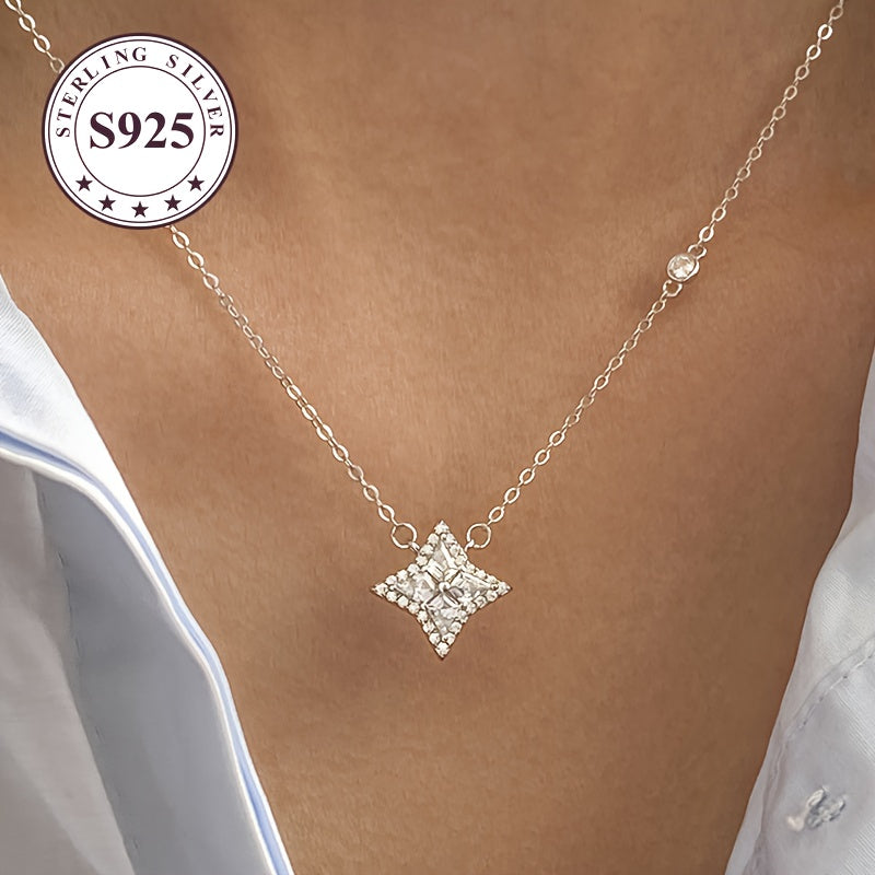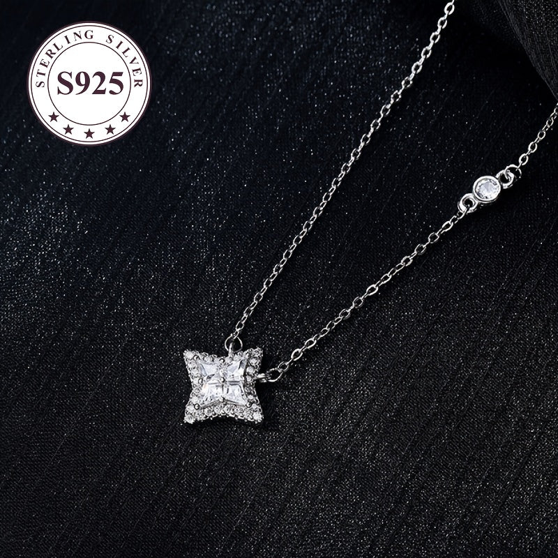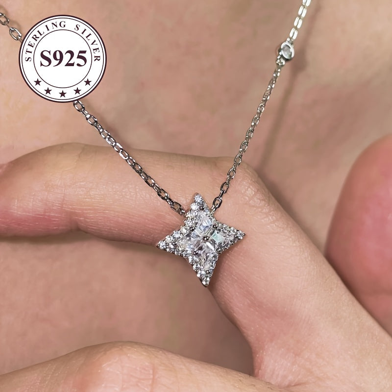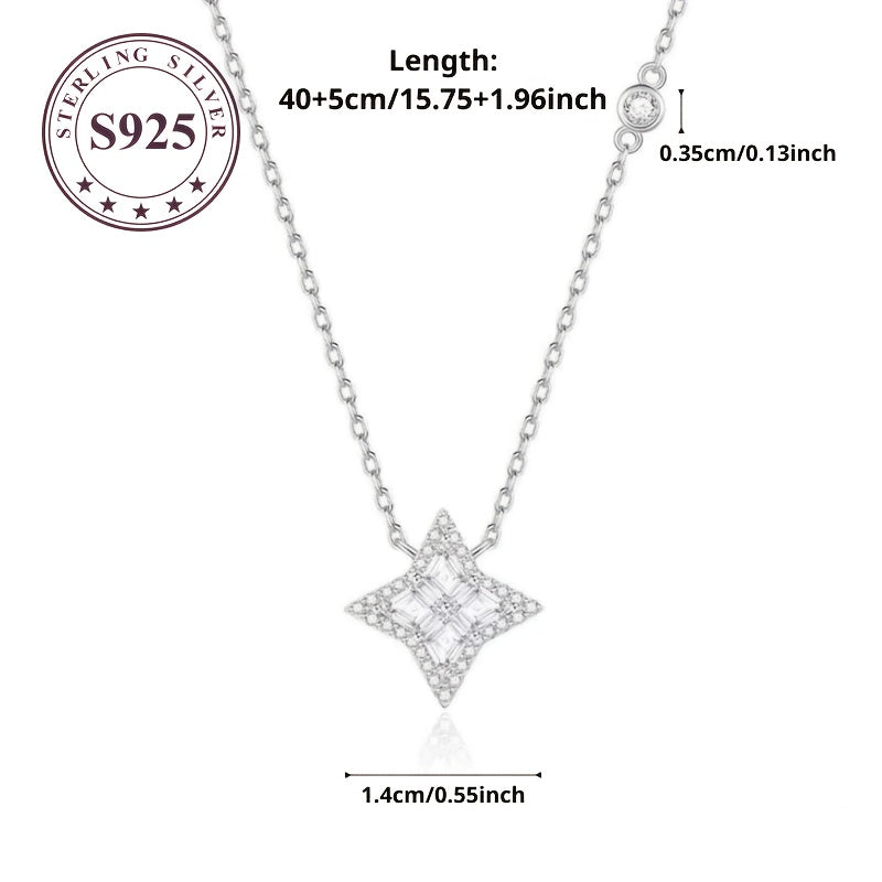 Blenden Sie in dieser glänzenden 925 Sterling Silver Star Pendellanhängerkette, die mit funkelnden kubischen Zirkonia geschmückt ist. Perfekt für Freizeitkleidung oder Partys, ein ideales Geschenk für den Muttertag.