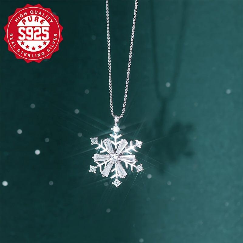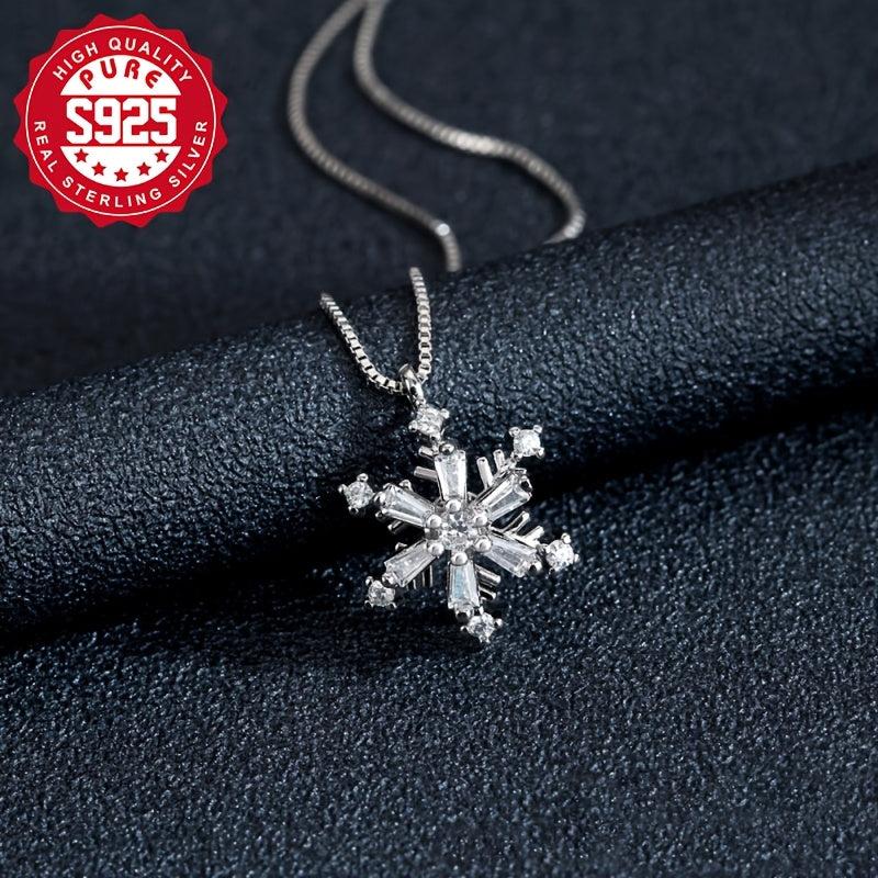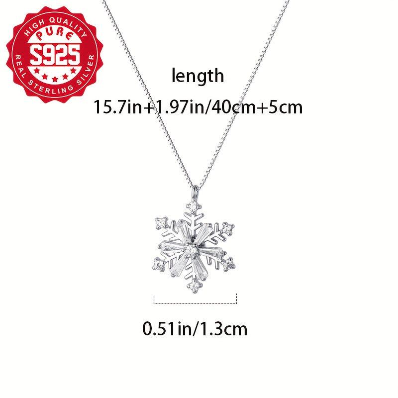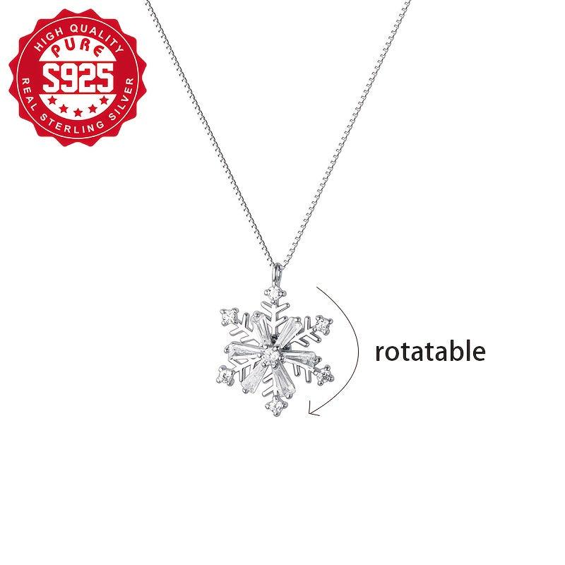 This stunning necklace features a 925 sterling silver windmill snowflake pendant with cubic zirconia inlay. The snowflake rotates, adding a touch of whimsy to your look. It is hypoallergenic and makes a perfect gift for parties or special occasions.