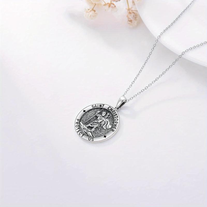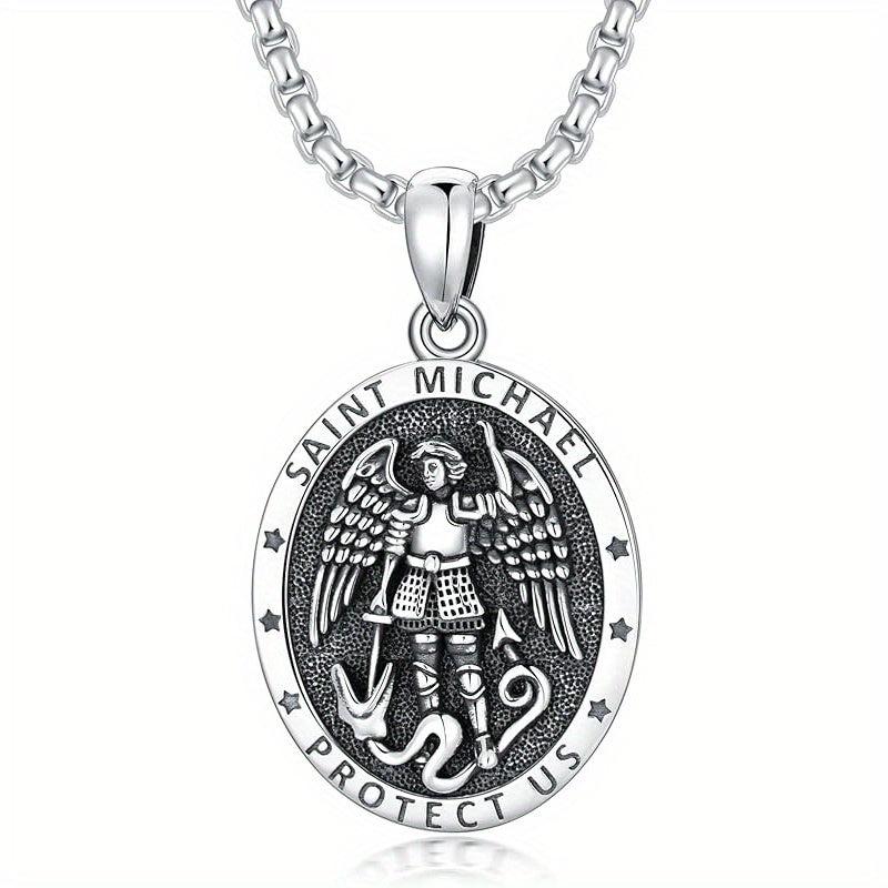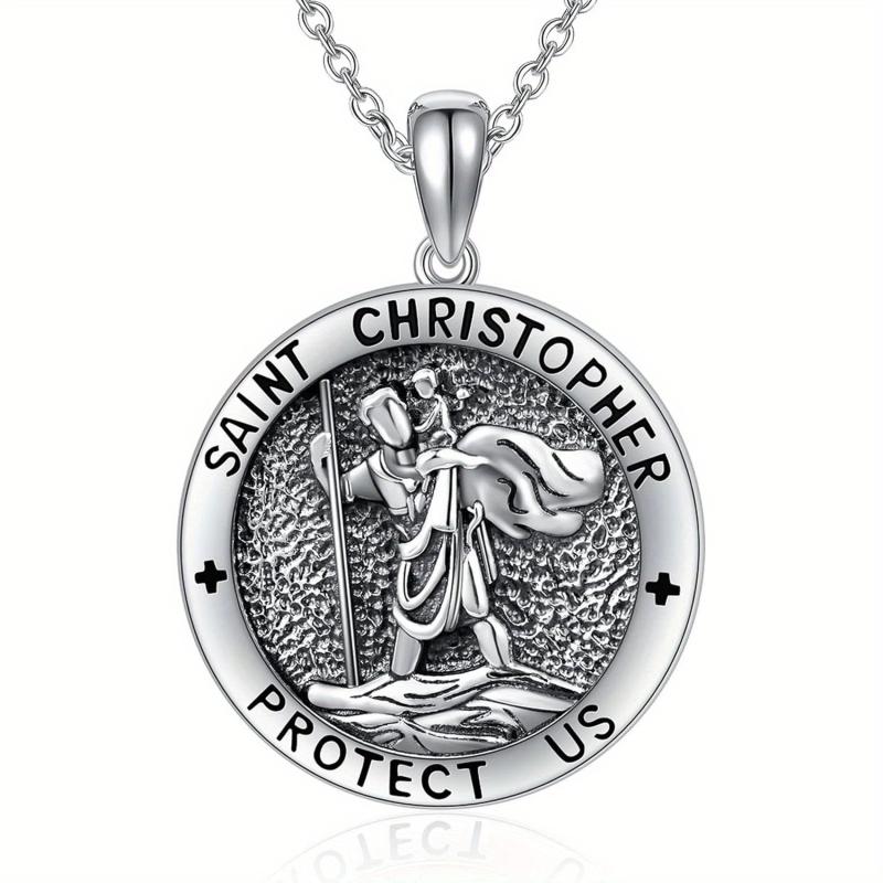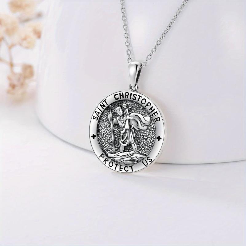 This stunning 925 sterling silver pendant necklace features the figures of St. Michael, St. Christopher, and St. Benedict. It is perfect for both men and women.
