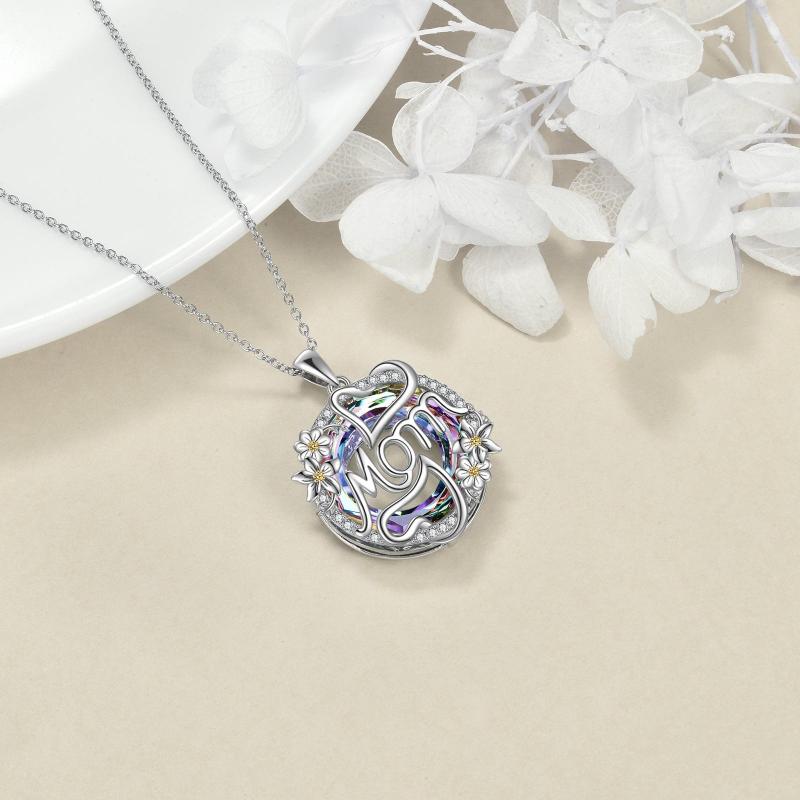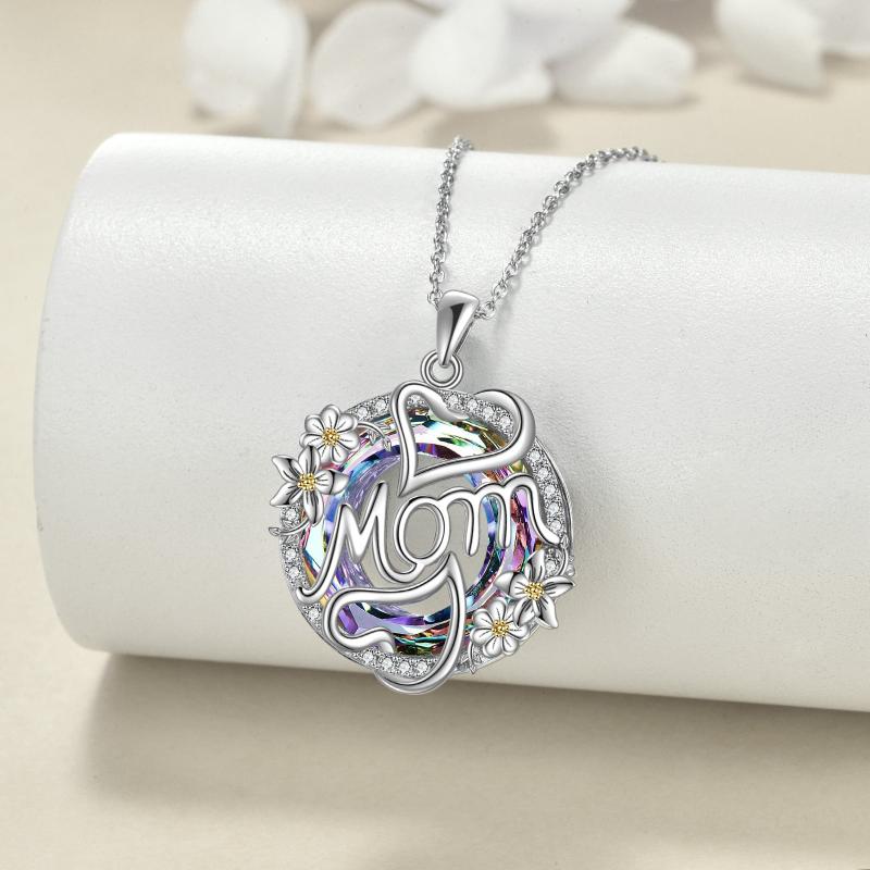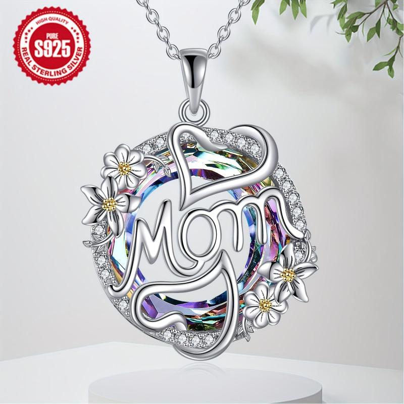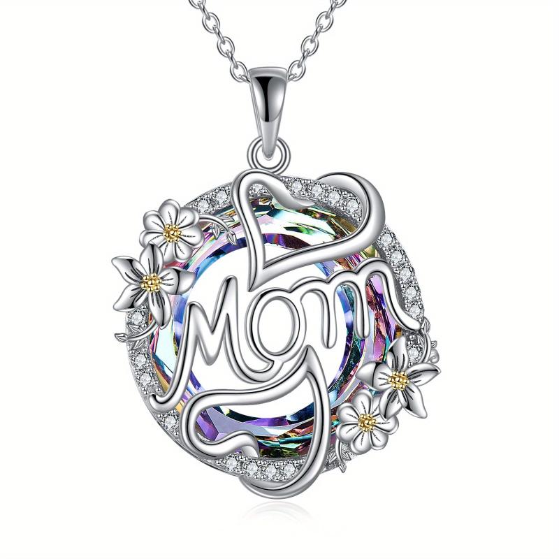 This stunning sterling silver necklace features a beautiful flower pendant with artificial crystal, a perfect gift for Mother's Day or a birthday.