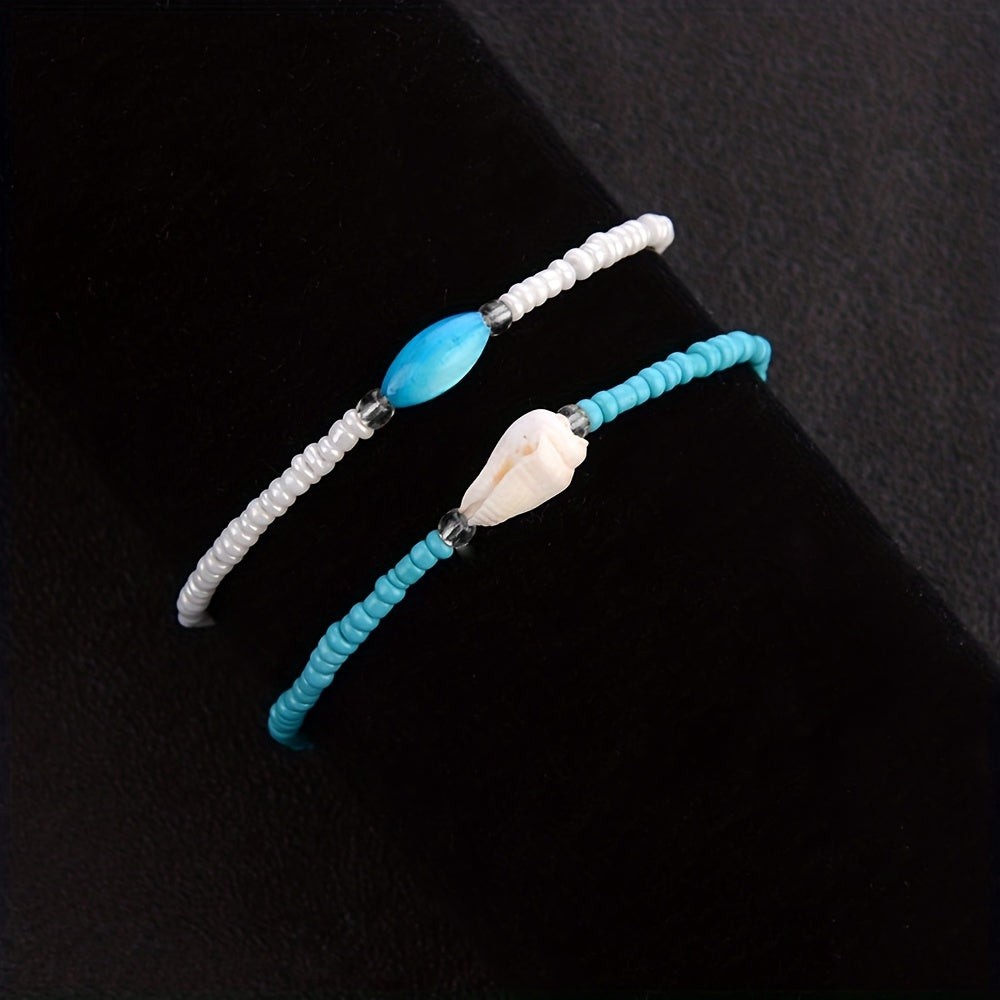 Elevate your beach look with this 2-piece anklet set featuring beads in a summer ocean style. Perfect for adding a touch of elegance to your ankles.