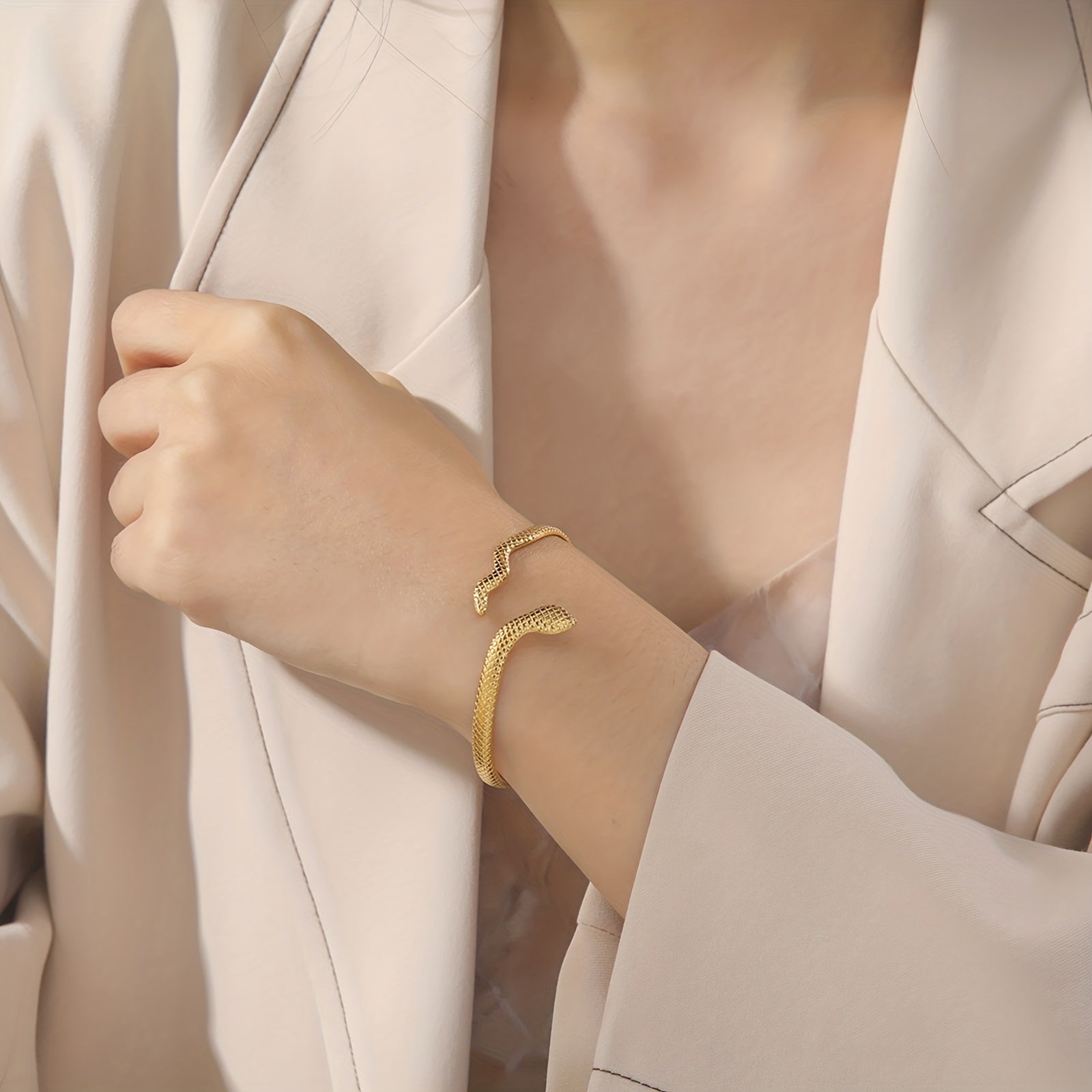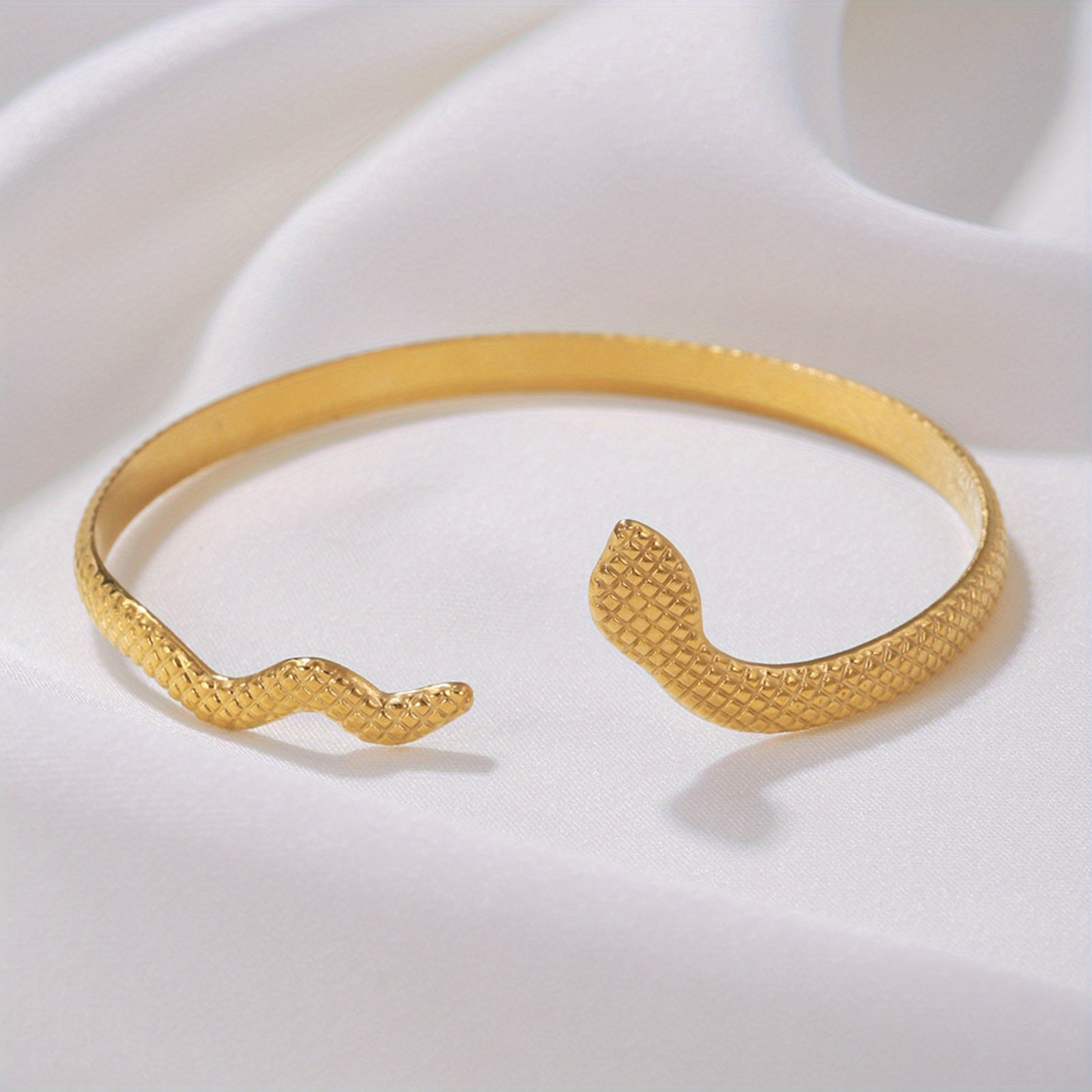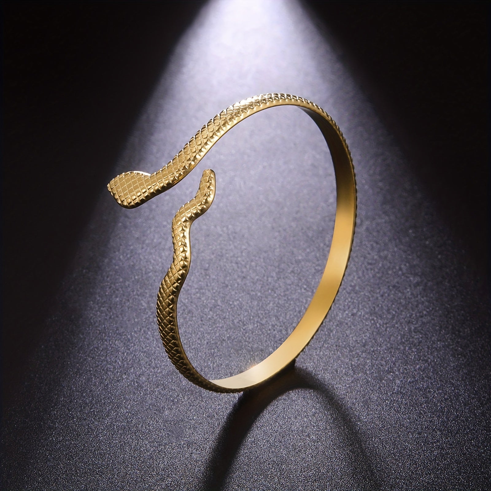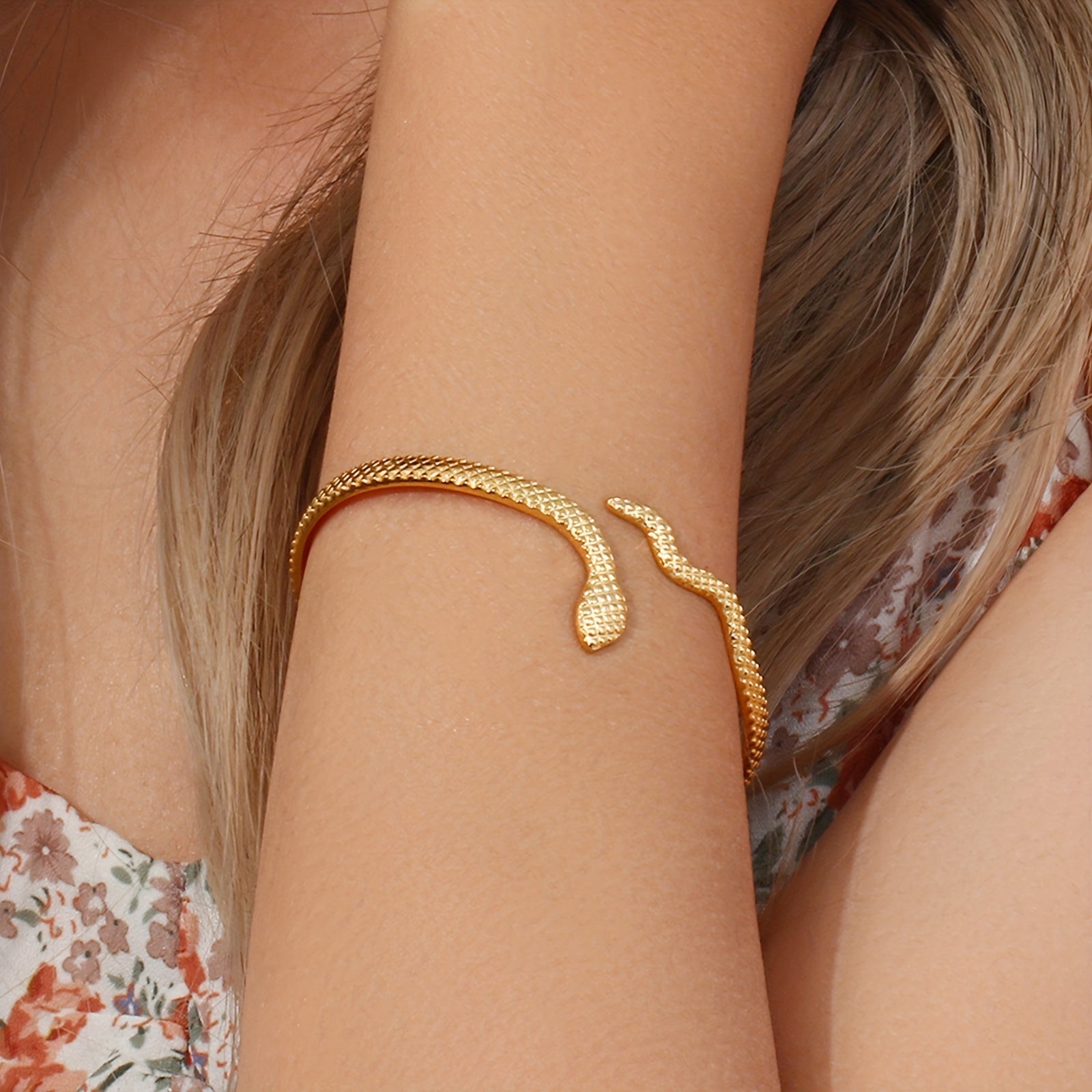 Add a touch of wild elegance to your outfit with this golden snake bangle. Perfect for parties and special occasions.