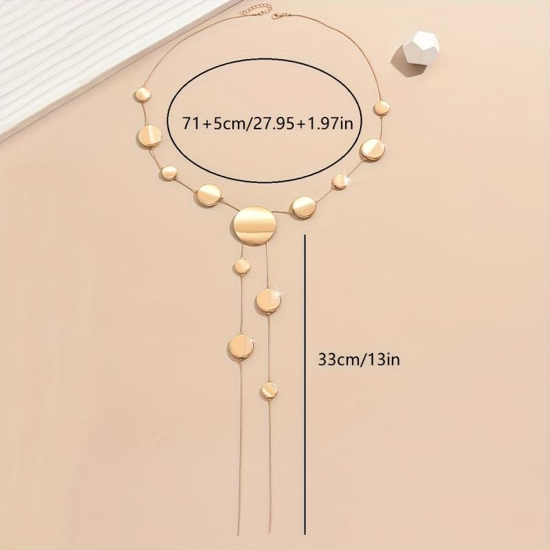 Elevate your style with this bohemian Y-shaped snake chain necklace featuring long geometric round beads. Made from durable plastic material, this necklace is perfect for casual attire year-round.