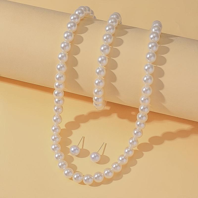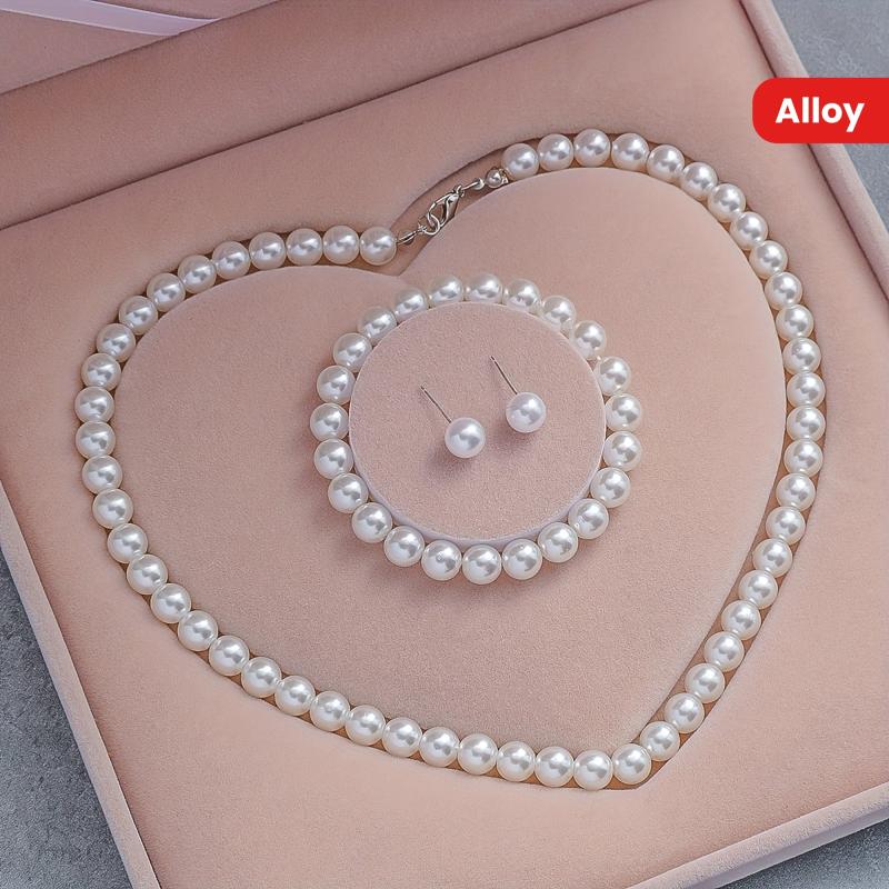 Elevate your style with this boho-inspired artificial pearl jewelry set. The set includes a versatile necklace, bracelet, and earrings that are perfect for daily wear or special occasions. The combination of alloy and resin materials adds a touch of elegance to your look.