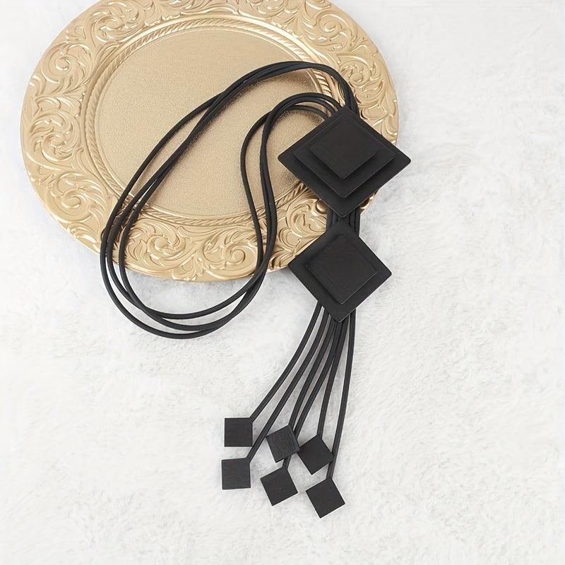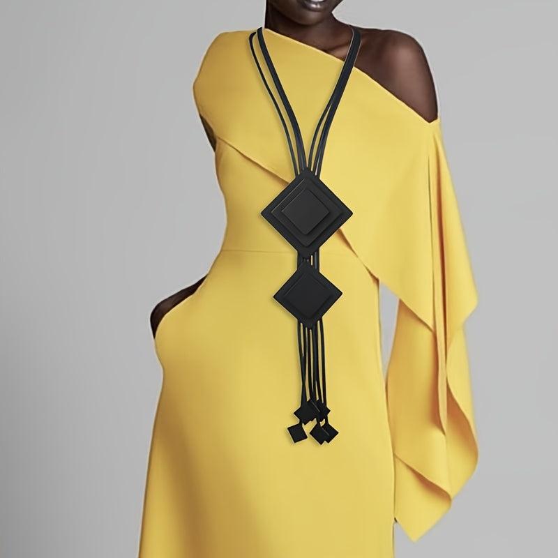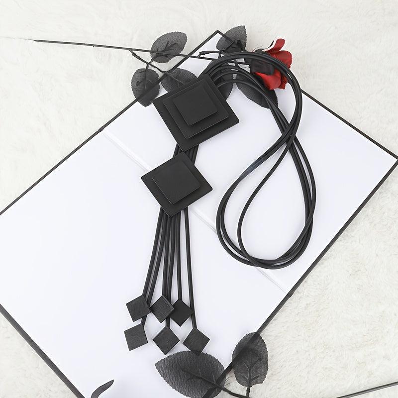 Boho Rhombus Pendant Necklace Long Tassel Statement Jewelry